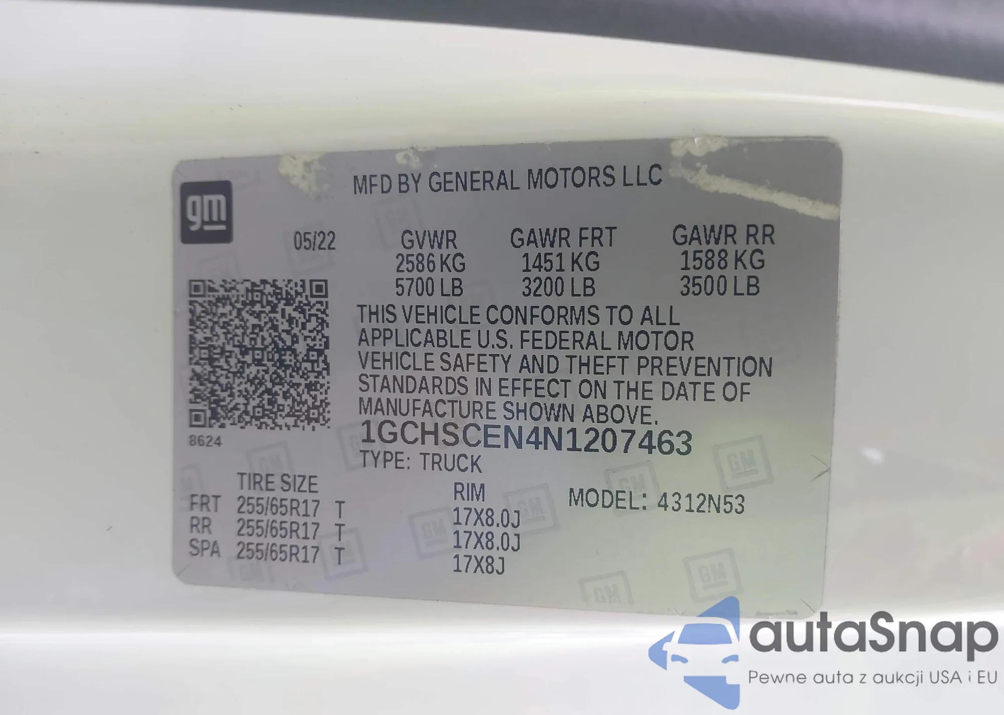 LOT: 44122986 VIN: 5NPET46C27H267787