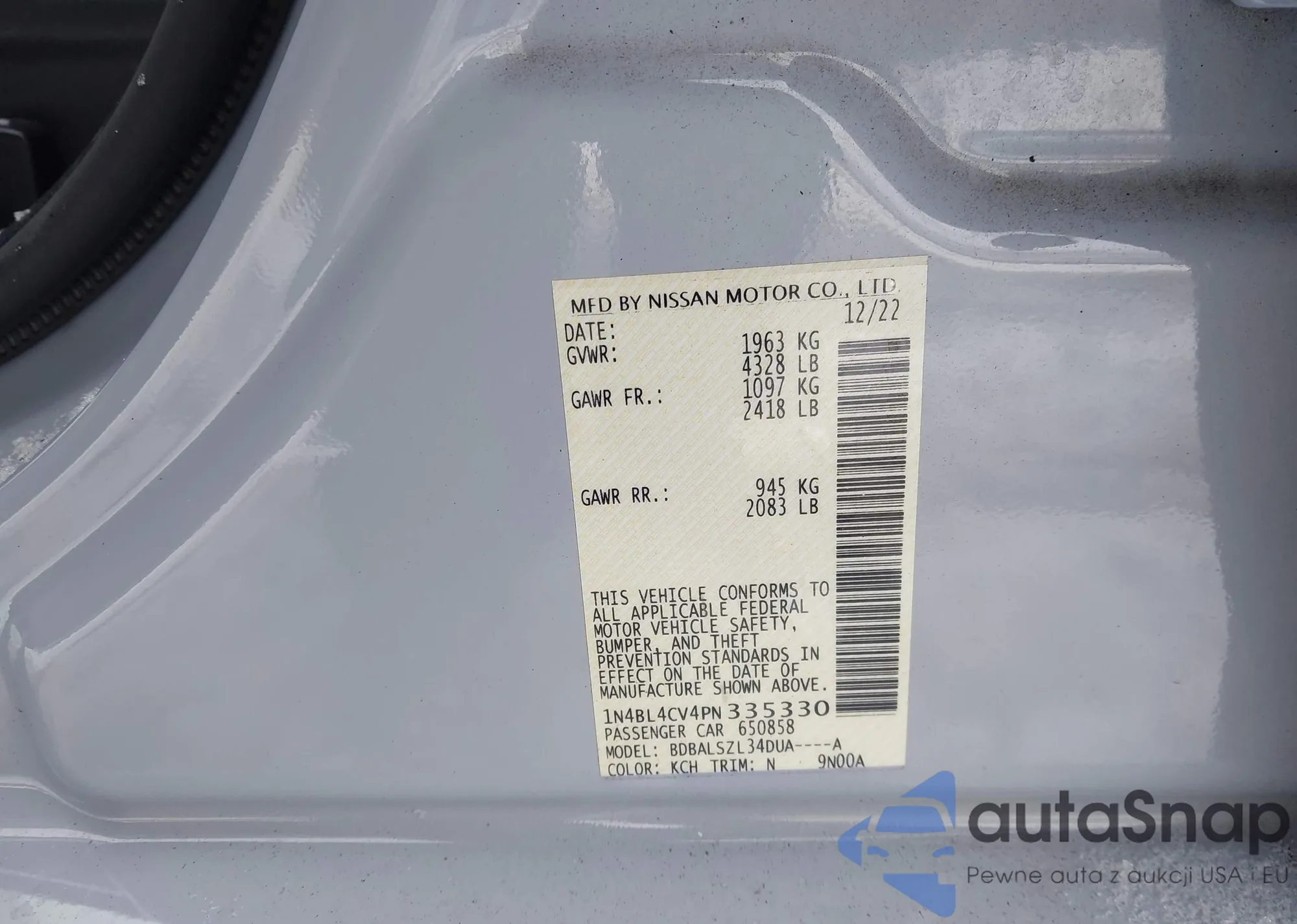 LOT: 43878182 VIN: 1N4BL4CV4PN335330