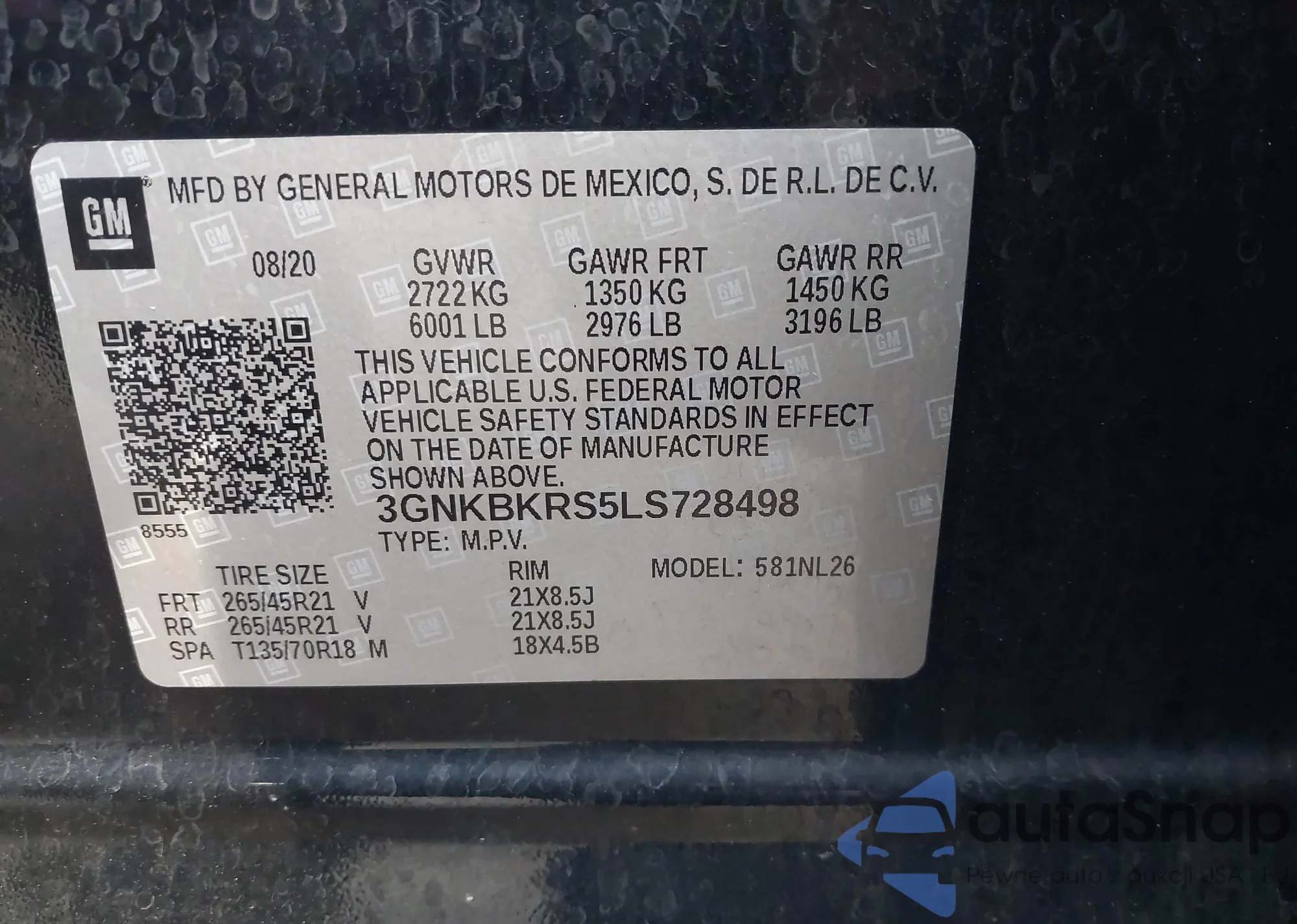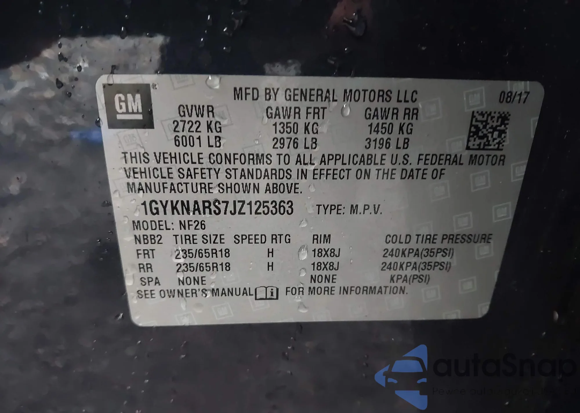 • VIN 1G6DF5RK7M0106892