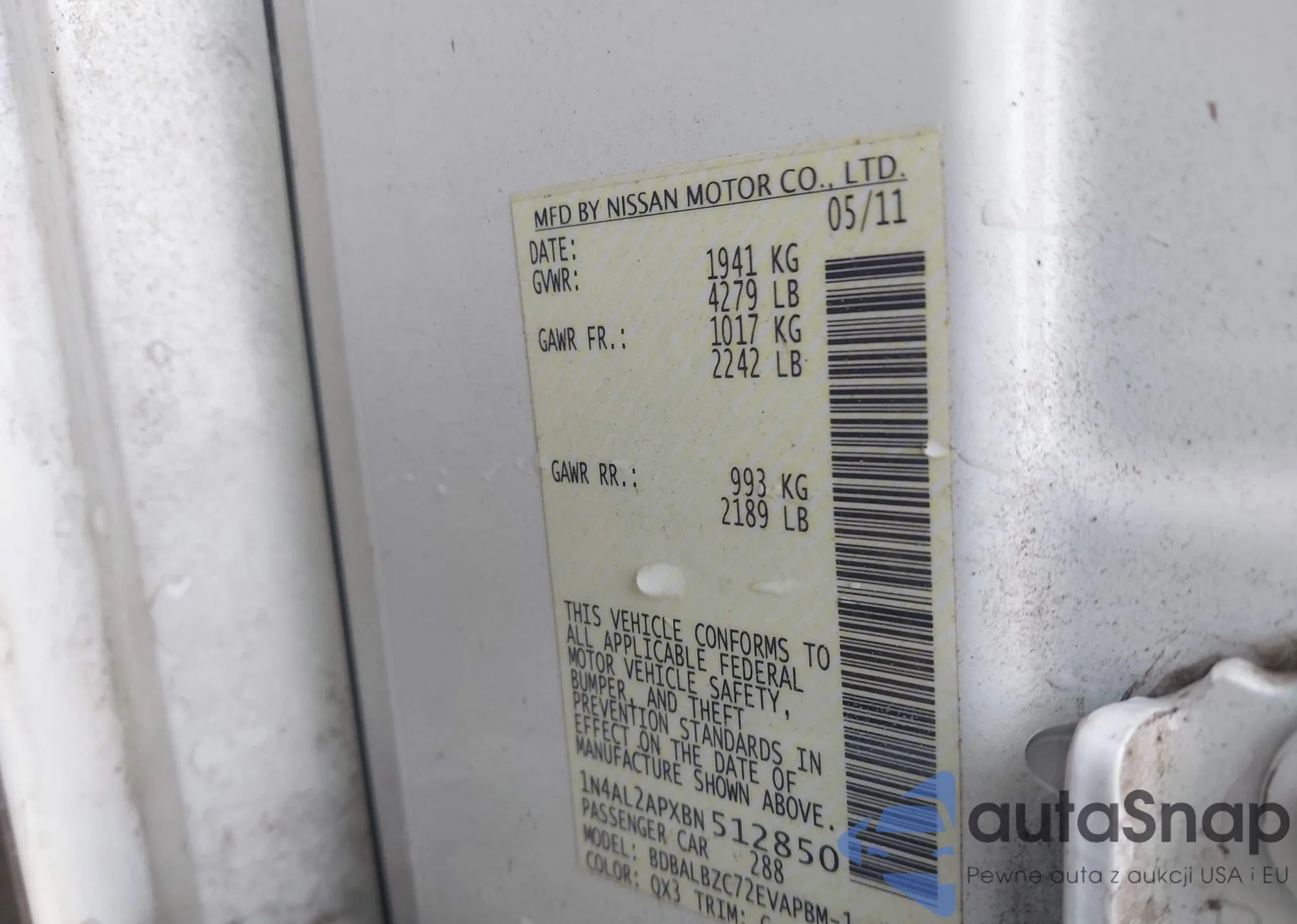 LOT: 44111938 VIN: 1N4AL2APXBN512850