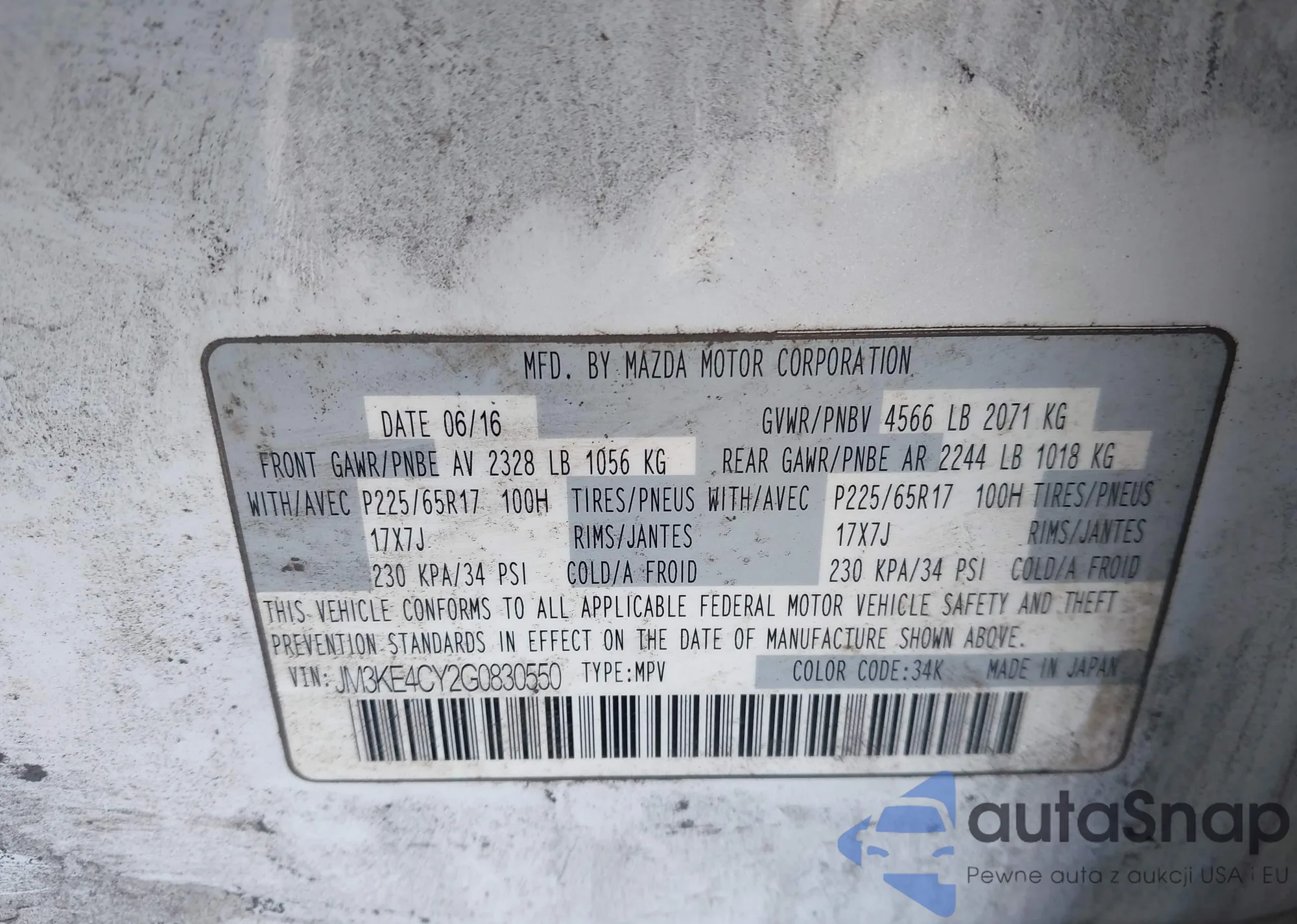 LOT: 44128694 VIN: JM3KE4CY2G0830550