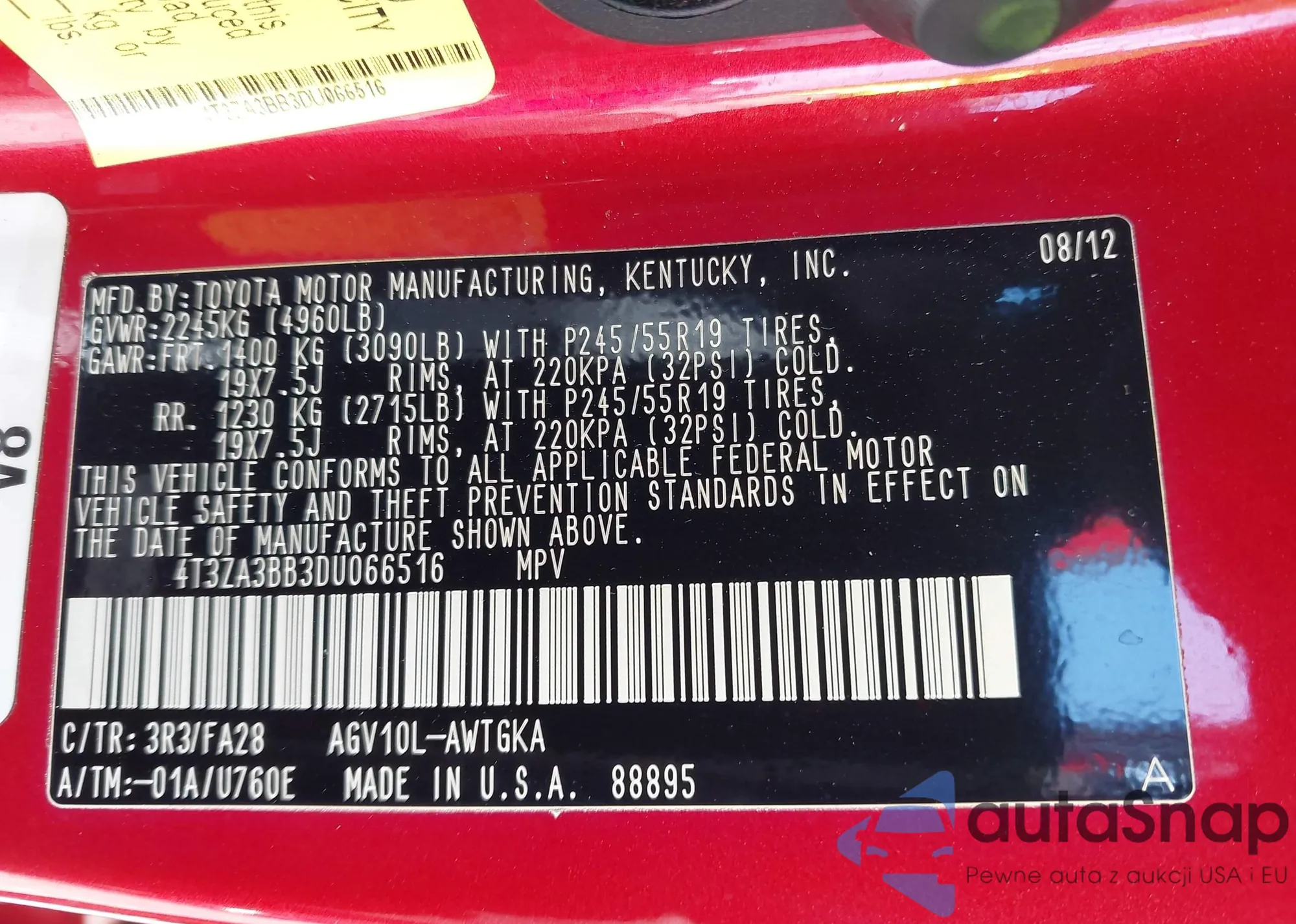 • VIN 4T1BF3EK3AU032773