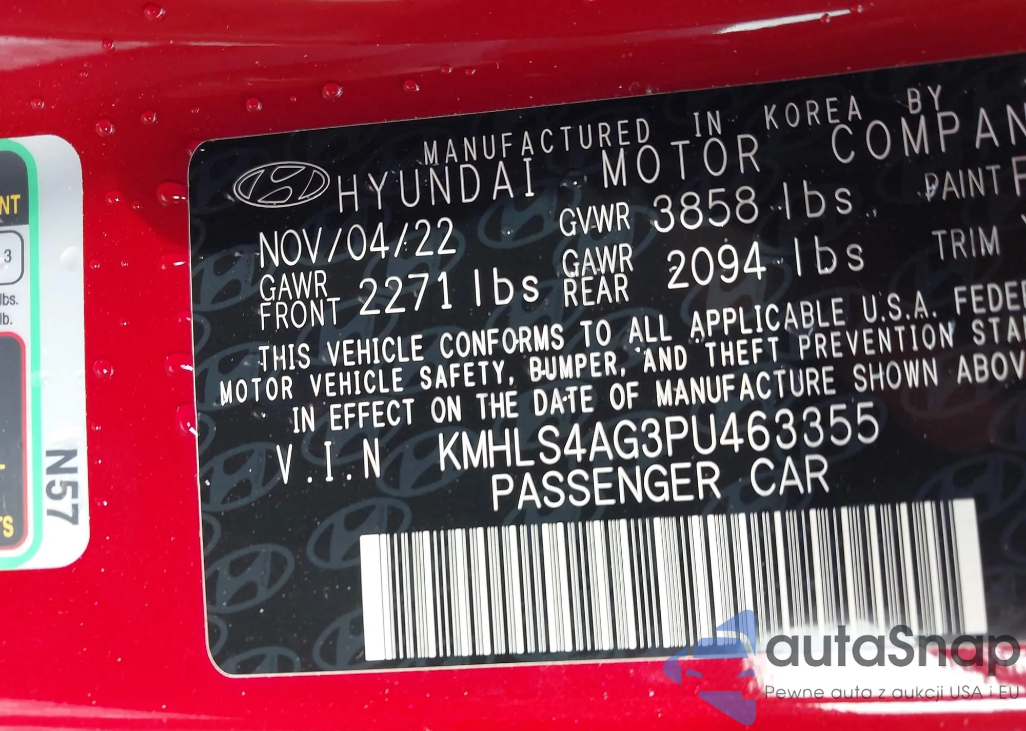 • VIN KMHLS4AG3PU463355