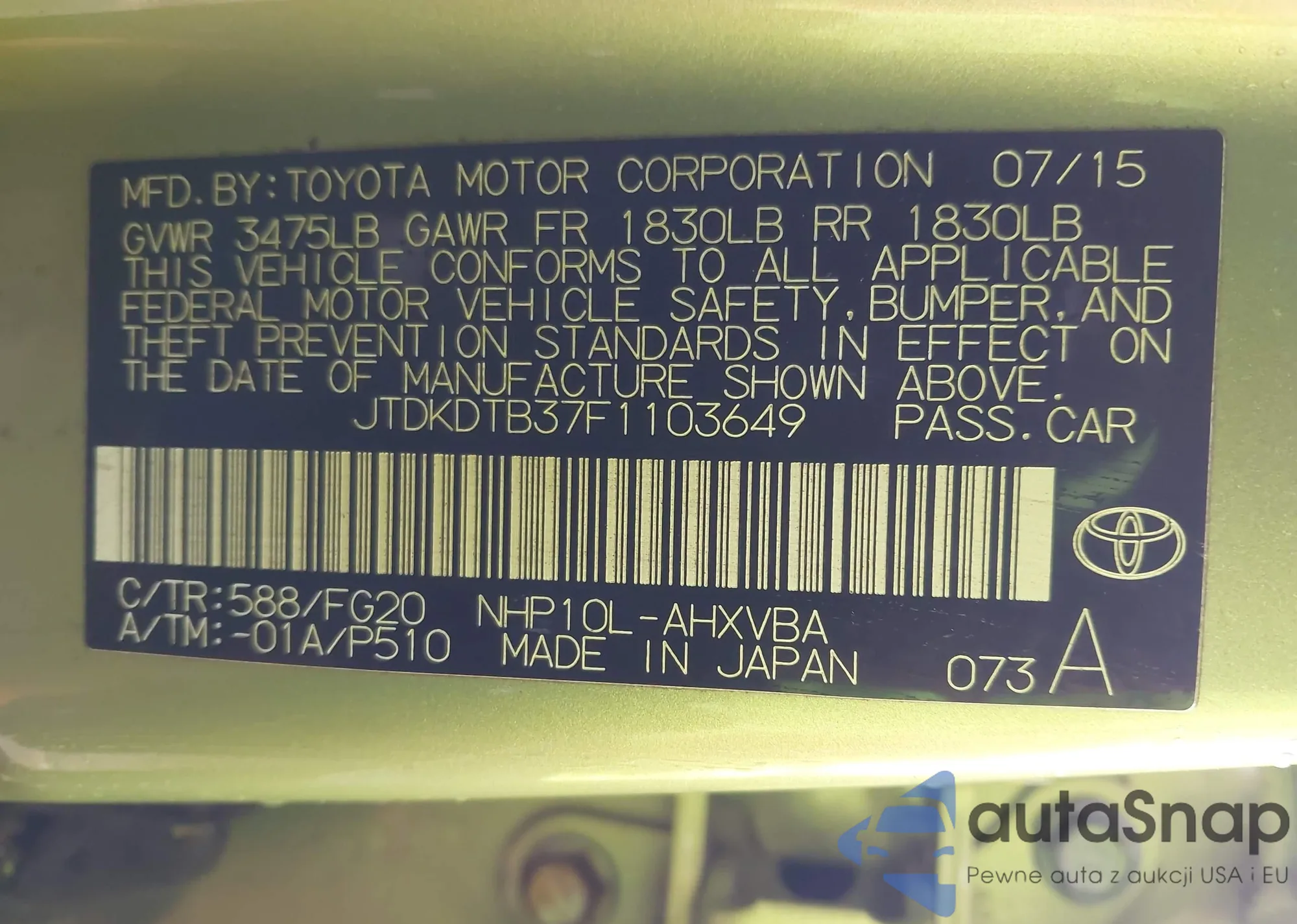LOT: 44004303 VIN: 1G6AB5RX8F0121690