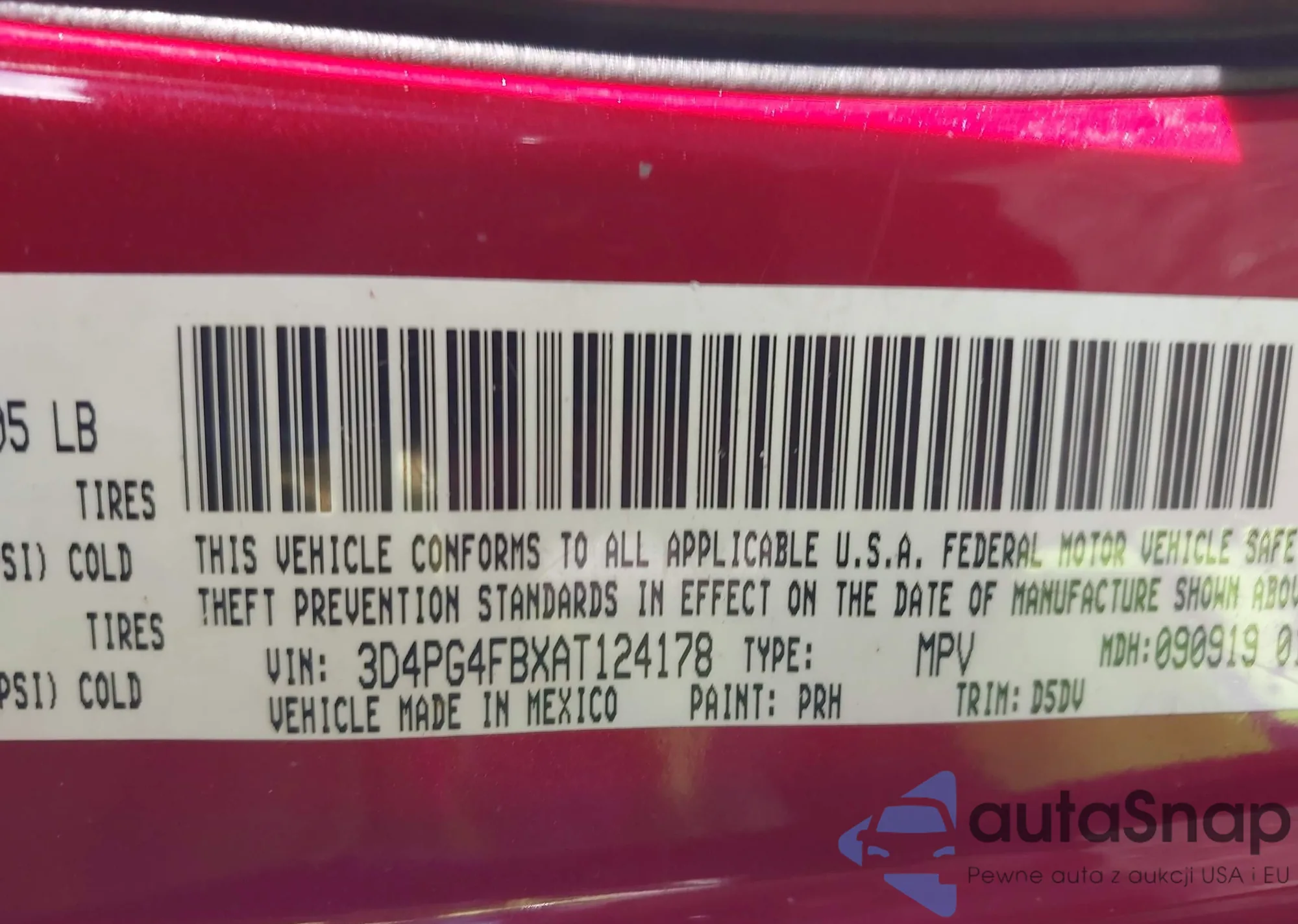 LOT: 43993532 VIN: 3D4PG4FBXAT124178