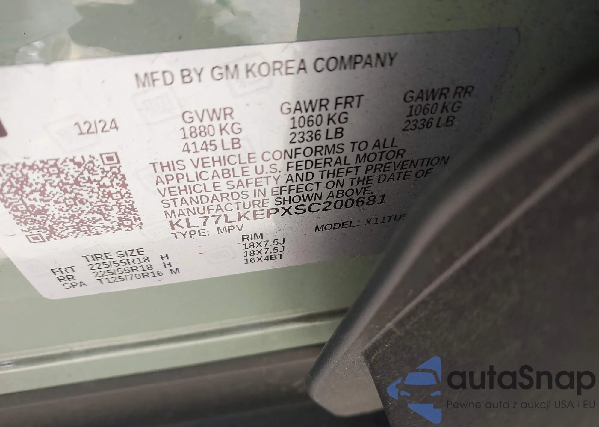 • VIN KL77LKEPXSC200681