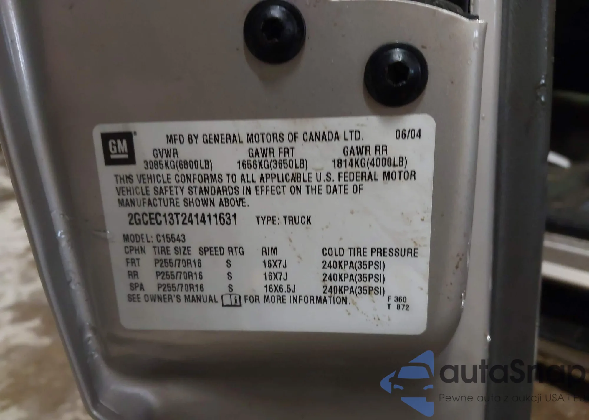 • VIN 2GCEC13T241411631