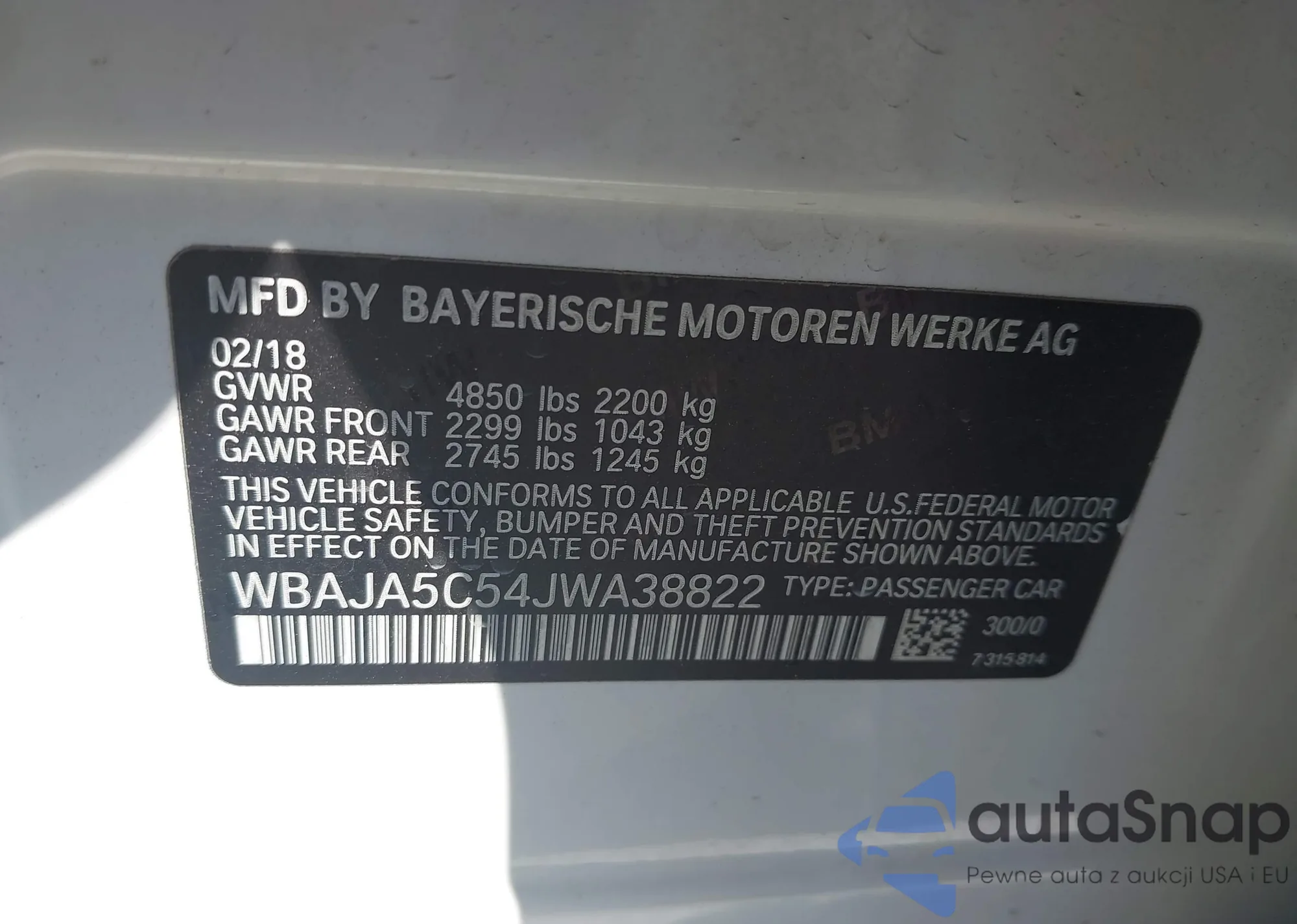 LOT: 44067189 VIN: WBAJA5C54JWA38822