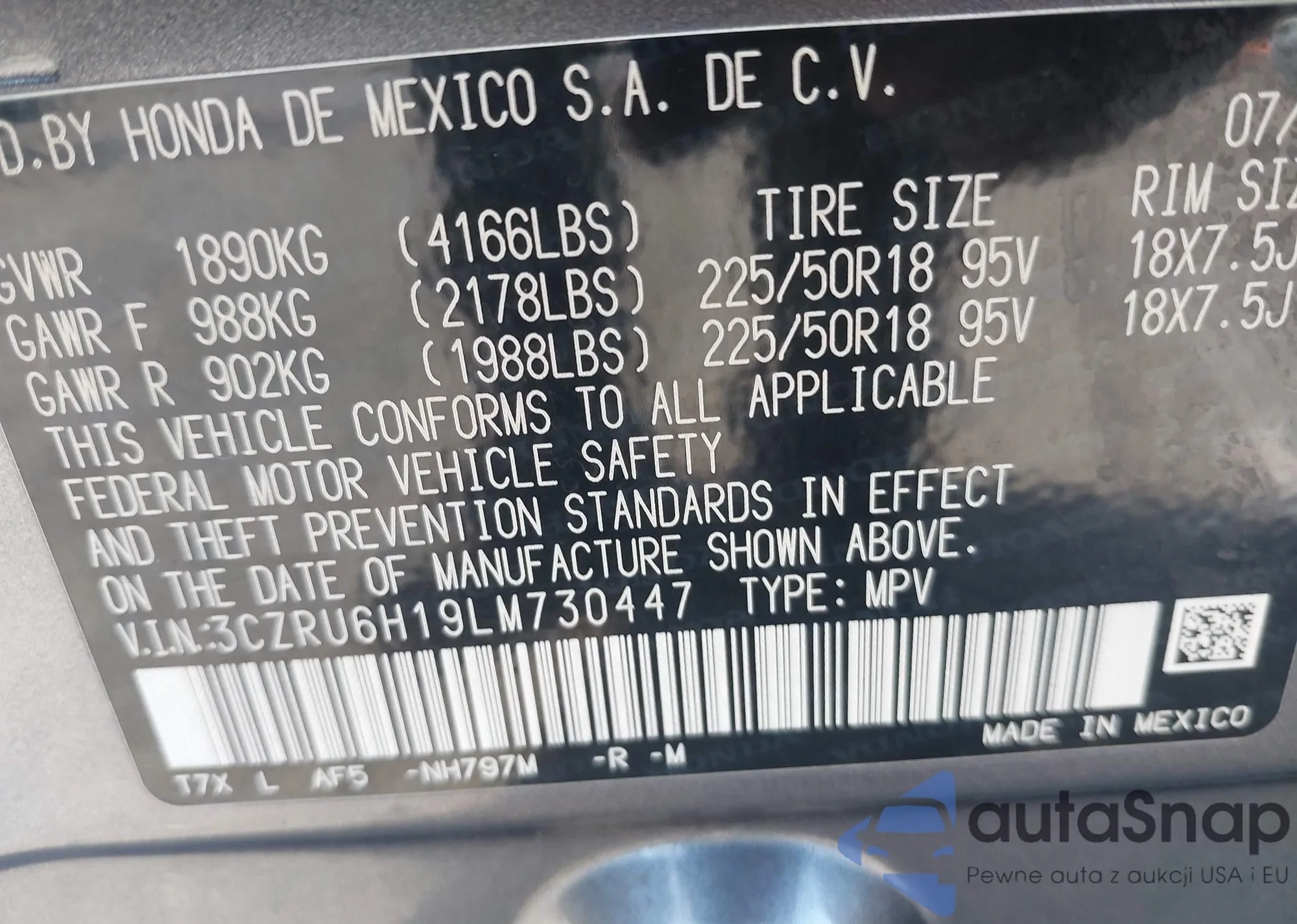 LOT: 43703275 VIN: 3CZRU6H19LM730447