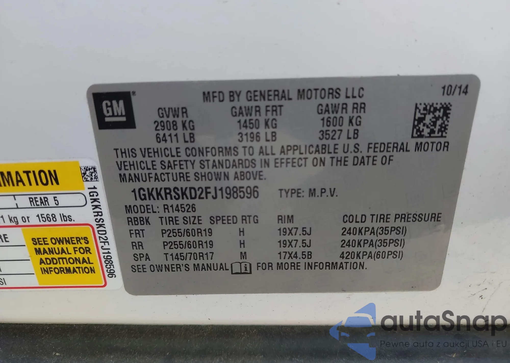 LOT: 43729659 VIN: 1GKKRSKD2FJ198596
