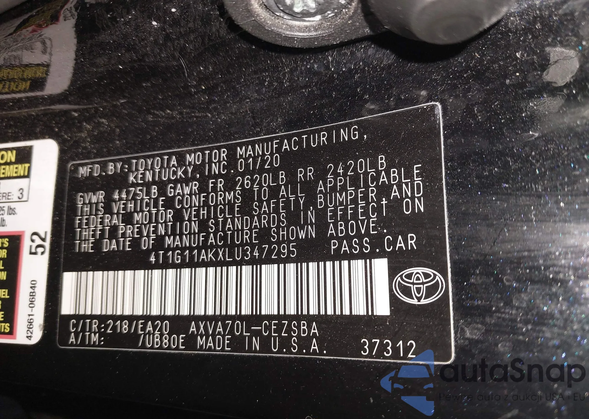 LOT: 44017642 VIN: 4T1G11AKXLU347295