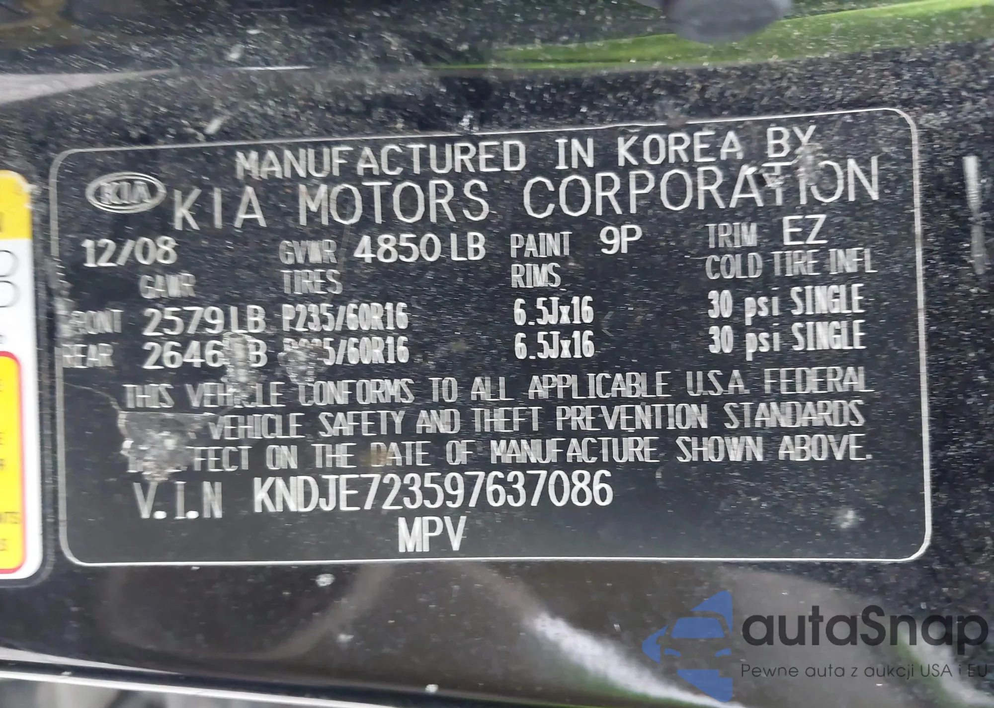 LOT: 43941638 VIN: KNDJE723597637086