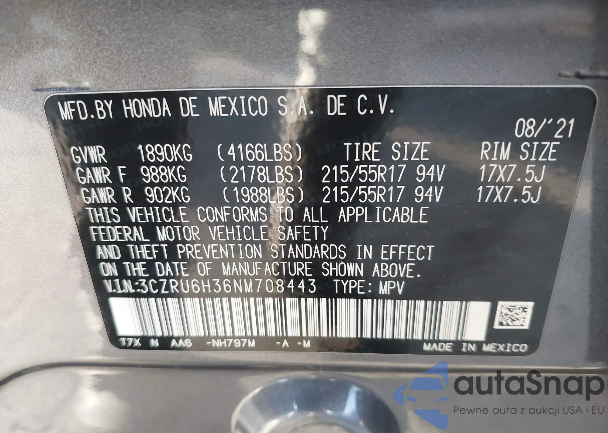 • VIN 3CZRU6H36NM708443