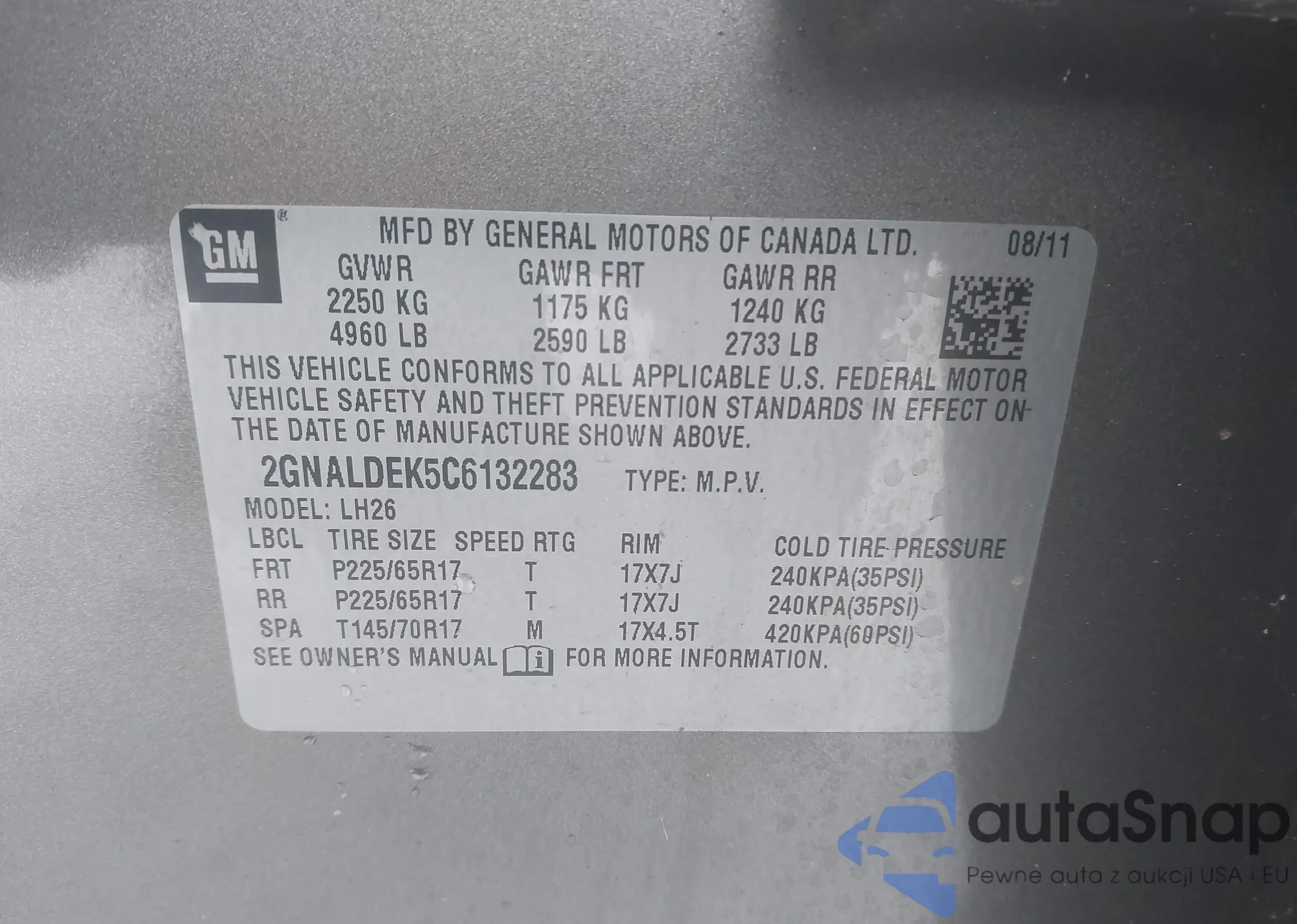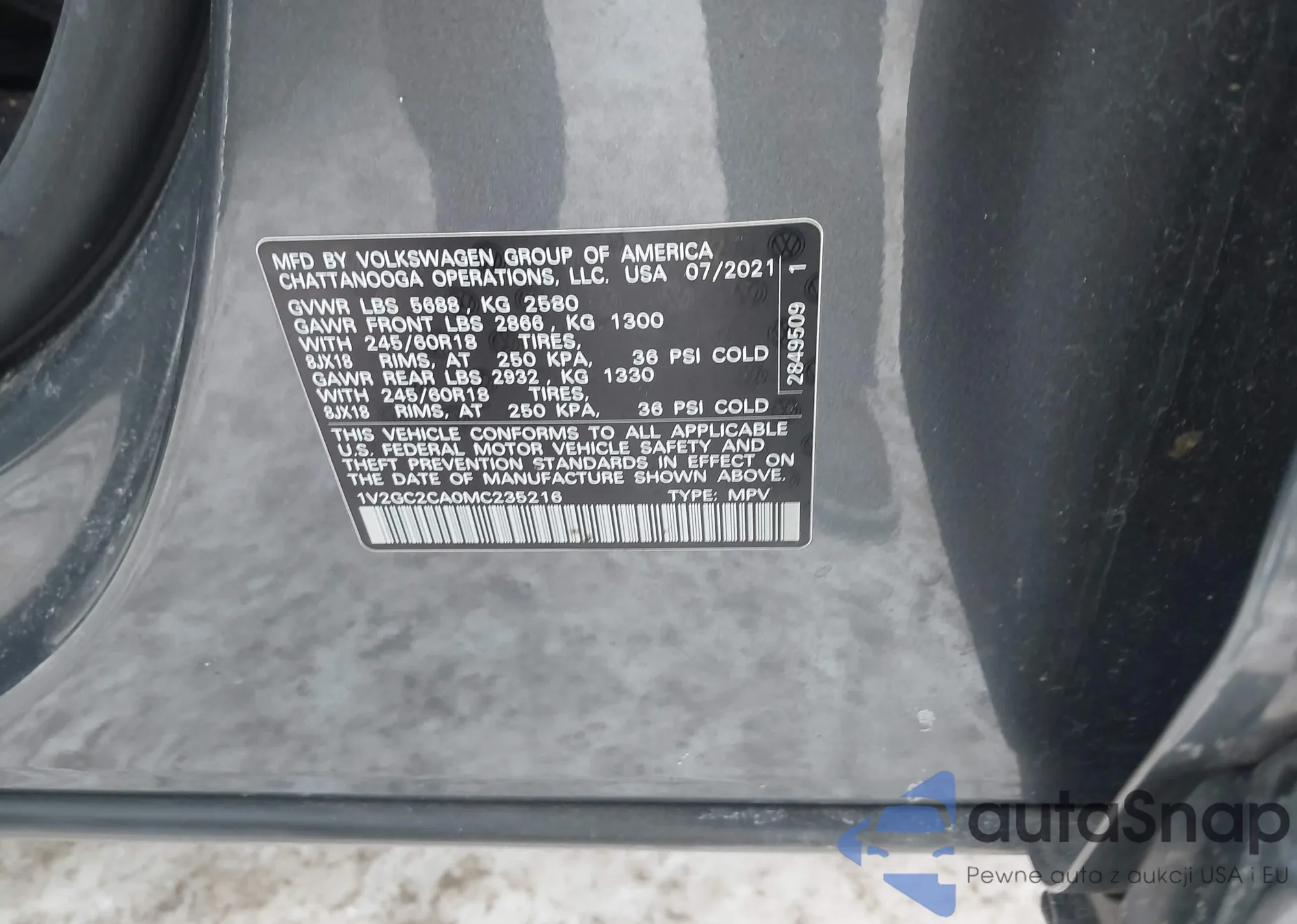 • VIN 1V2GC2CA0MC235216