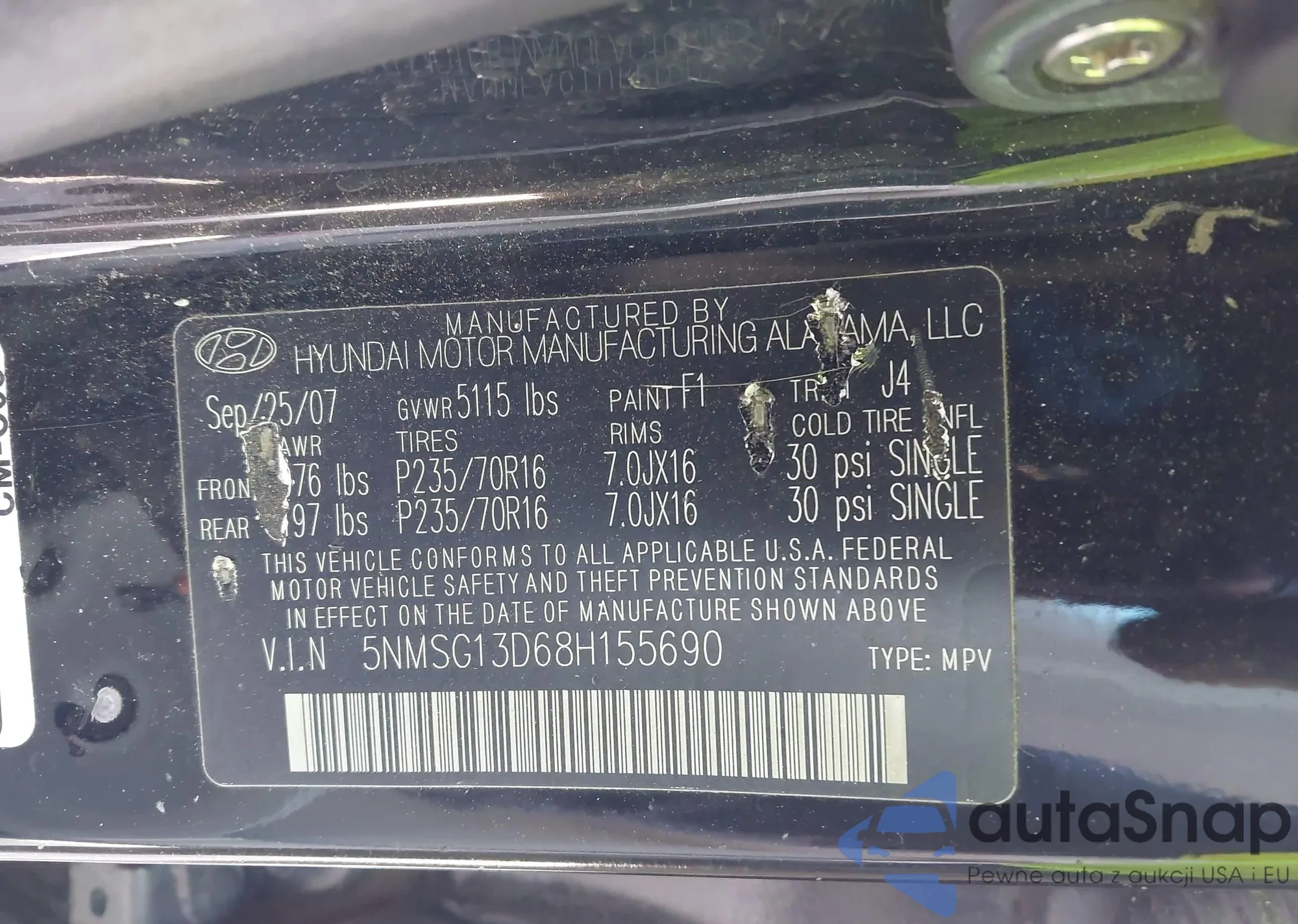 • VIN 5NMSG13D68H155690