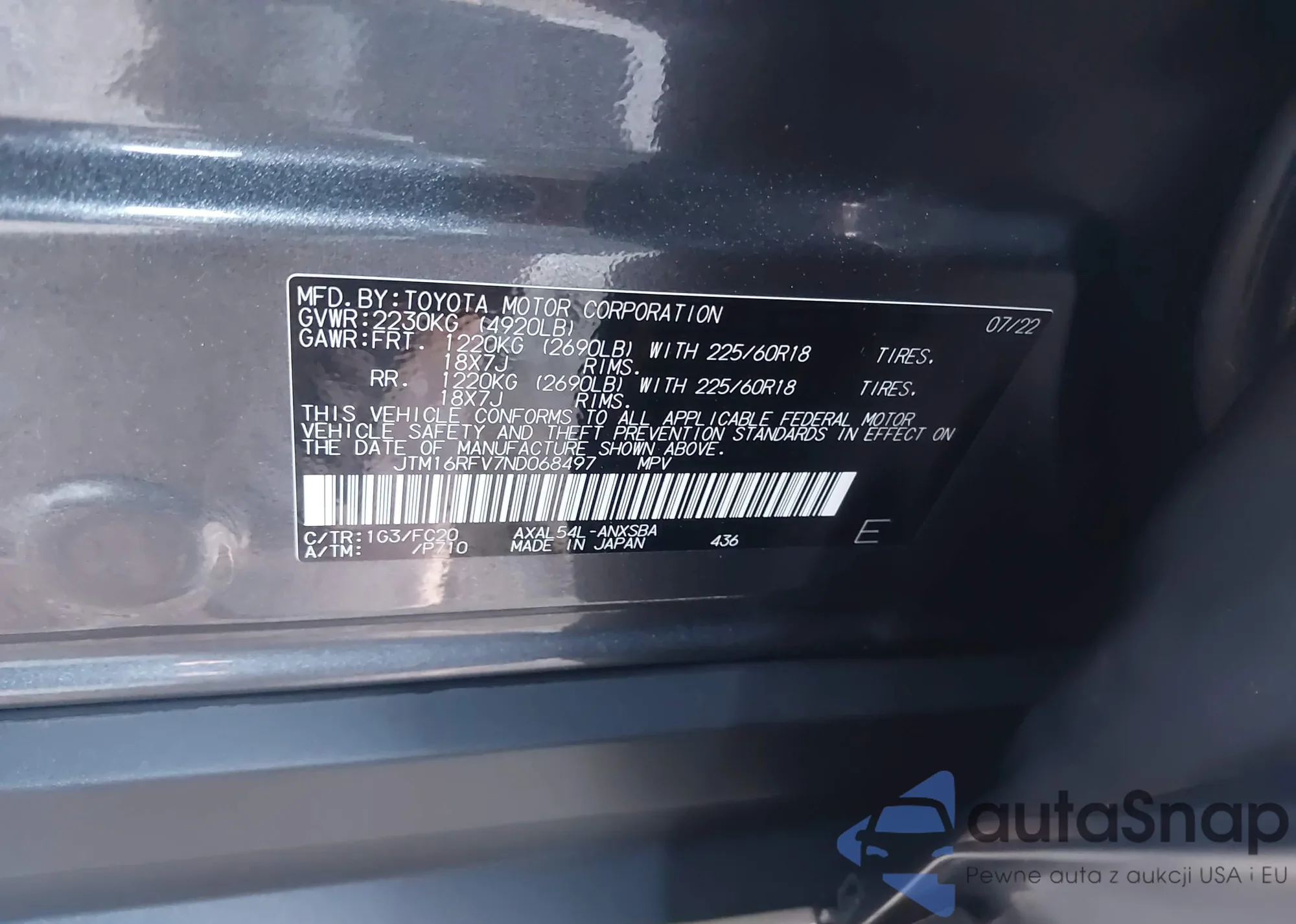 LOT: 43791577 VIN: JTM16RFV7ND068497