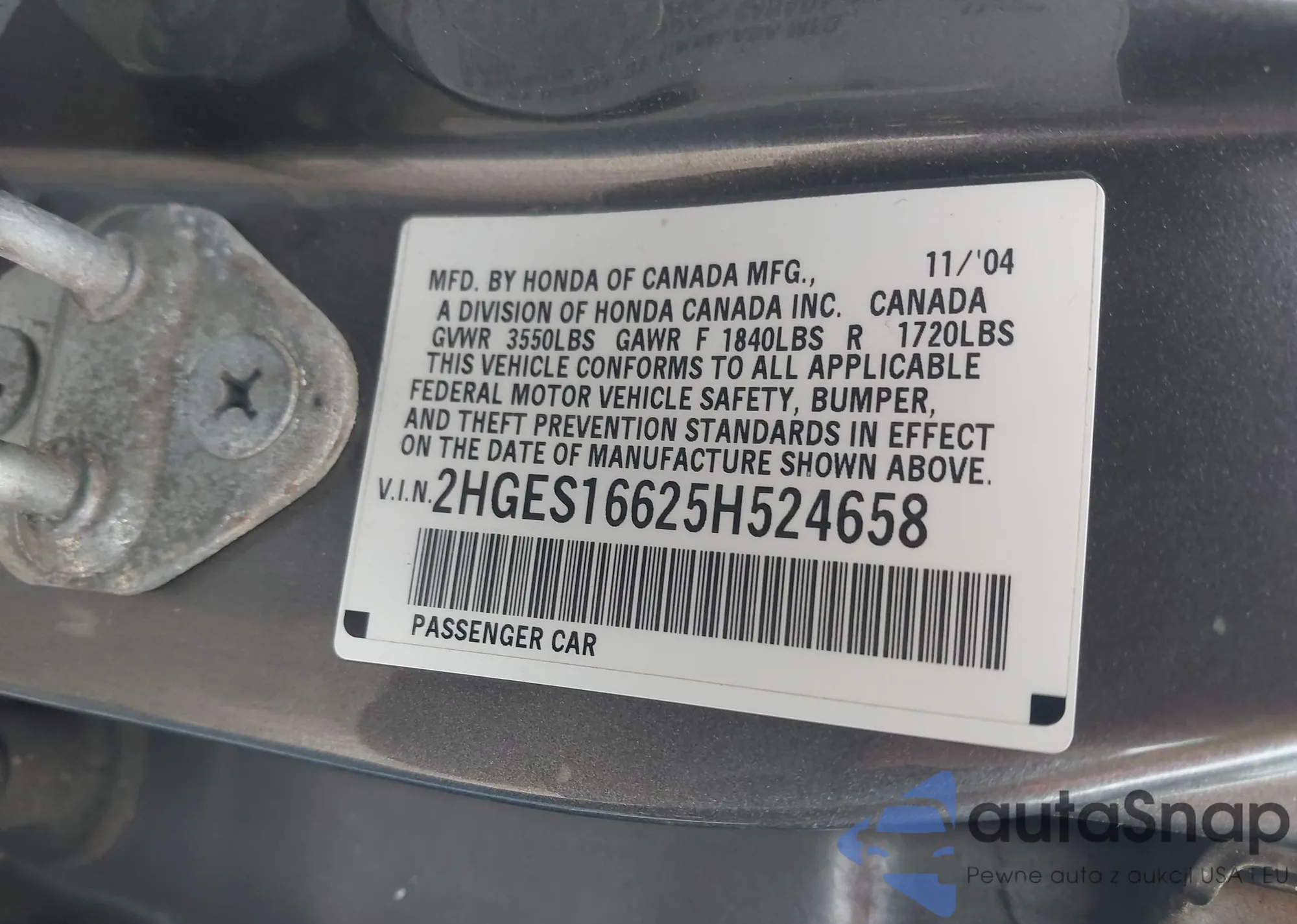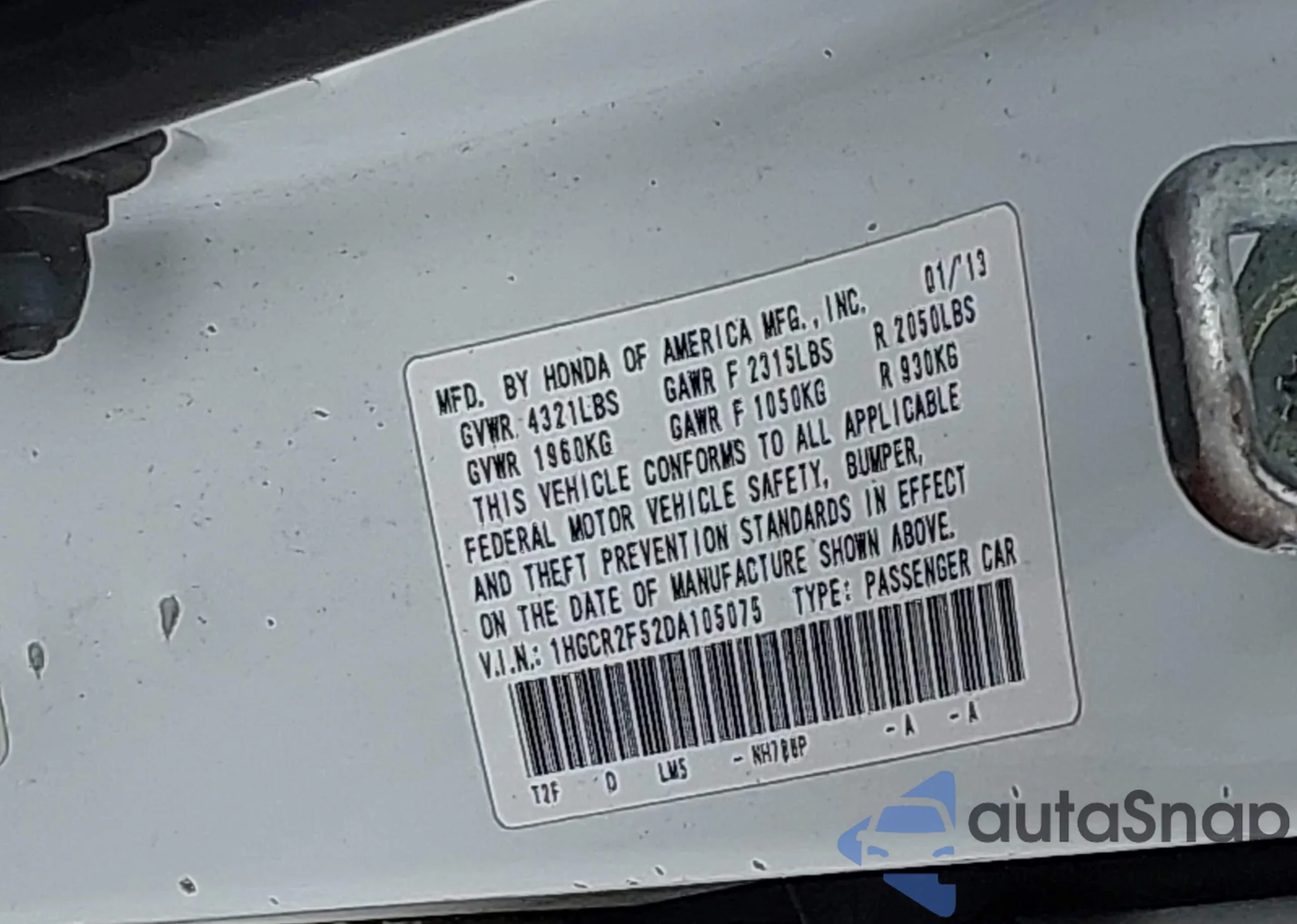 • VIN 19XFL2H86SE005995