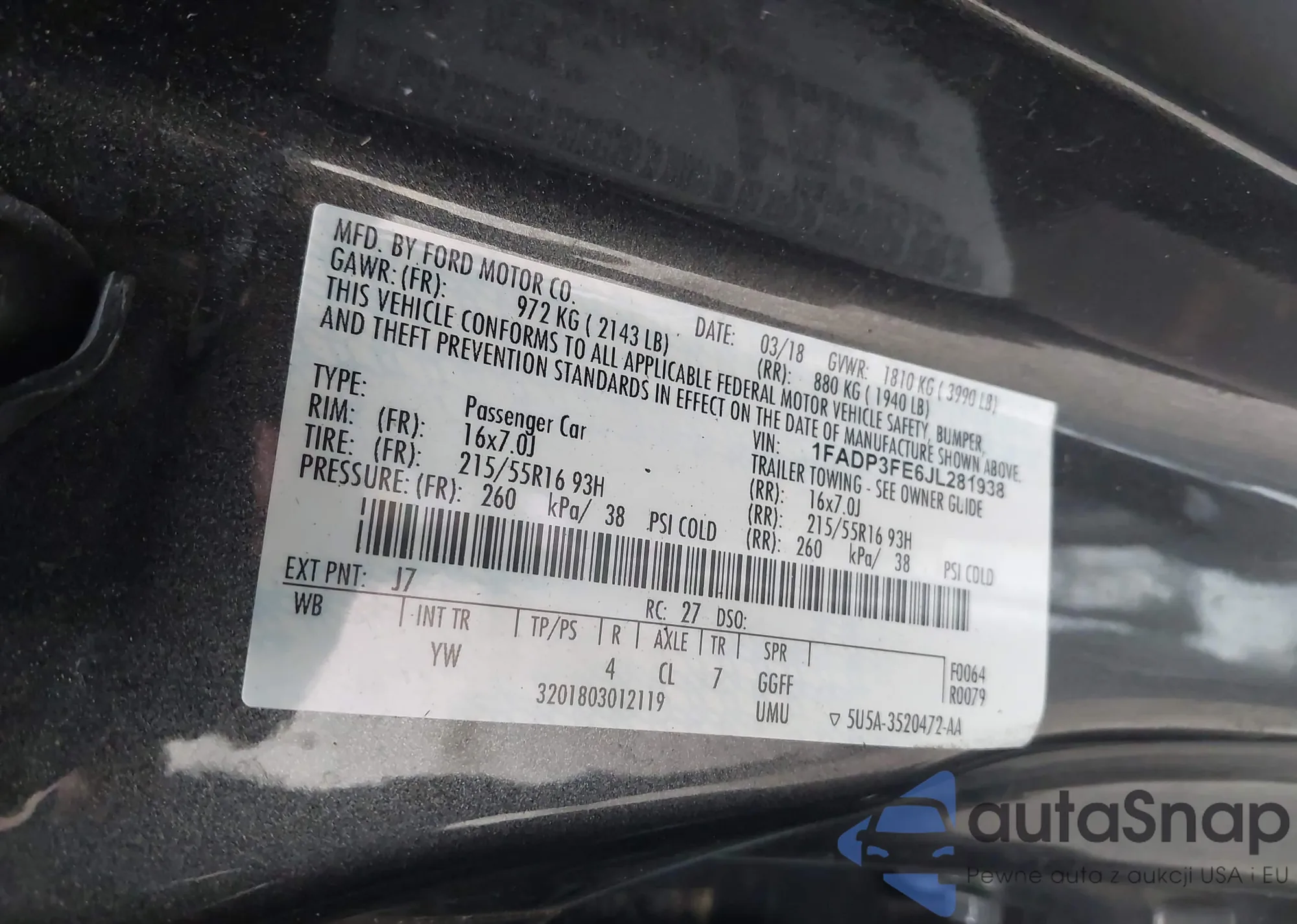 LOT: 43896687 VIN: WBXPC9C42AWJ37113
