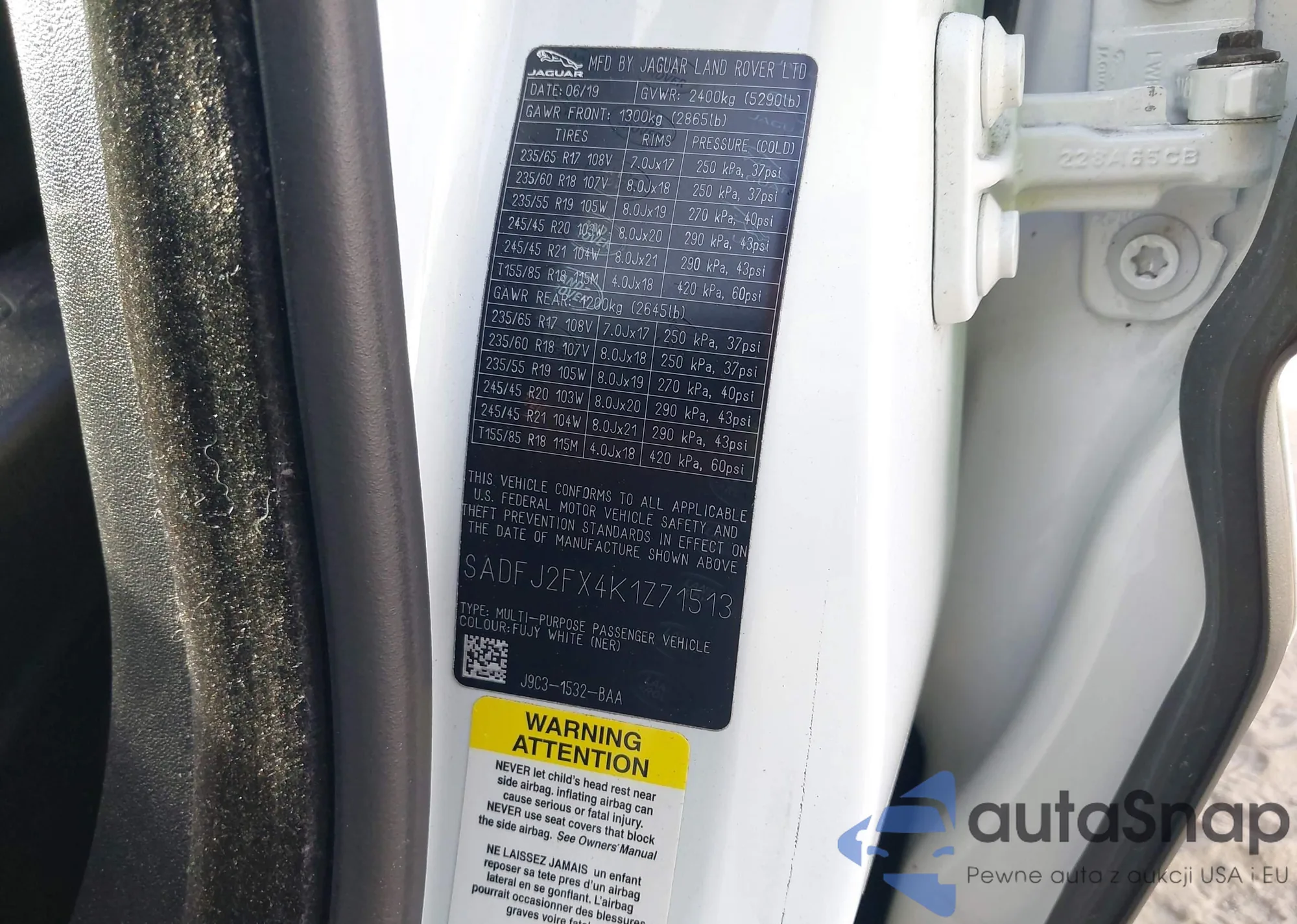 LOT: 43913414 VIN: SADFJ2FX4K1Z71513