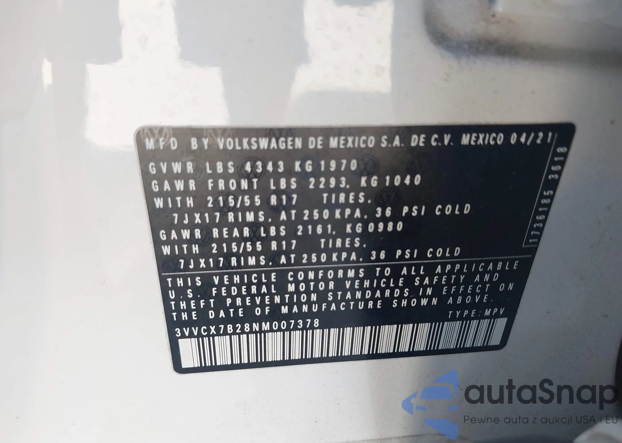 • VIN 3VVCX7B28NM007378