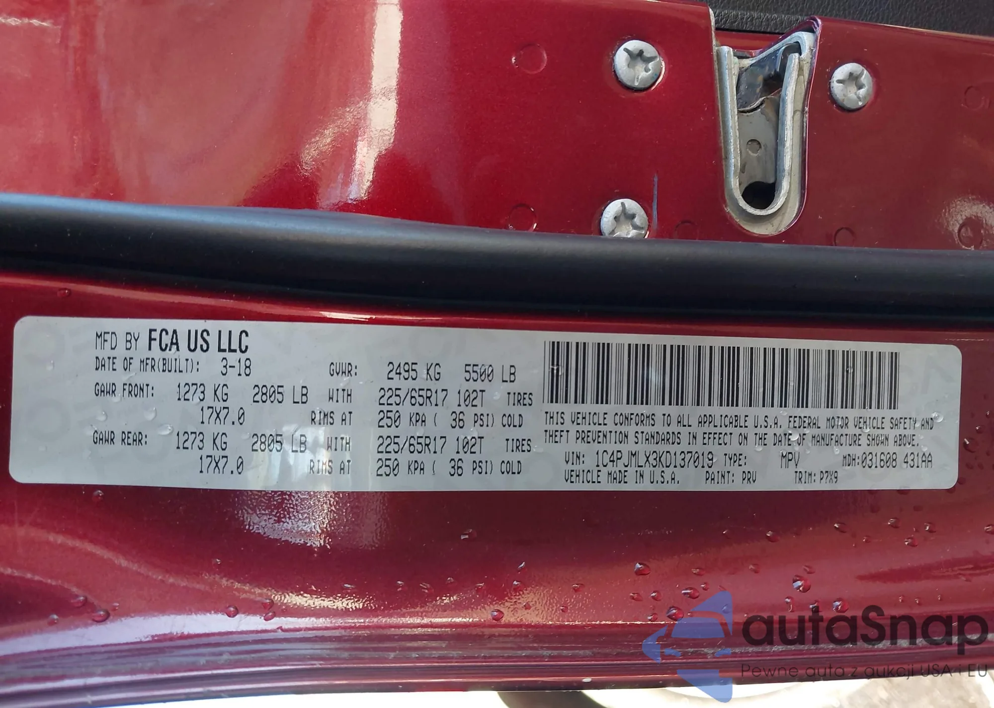 • VIN 1C4PJMLX3KD137019