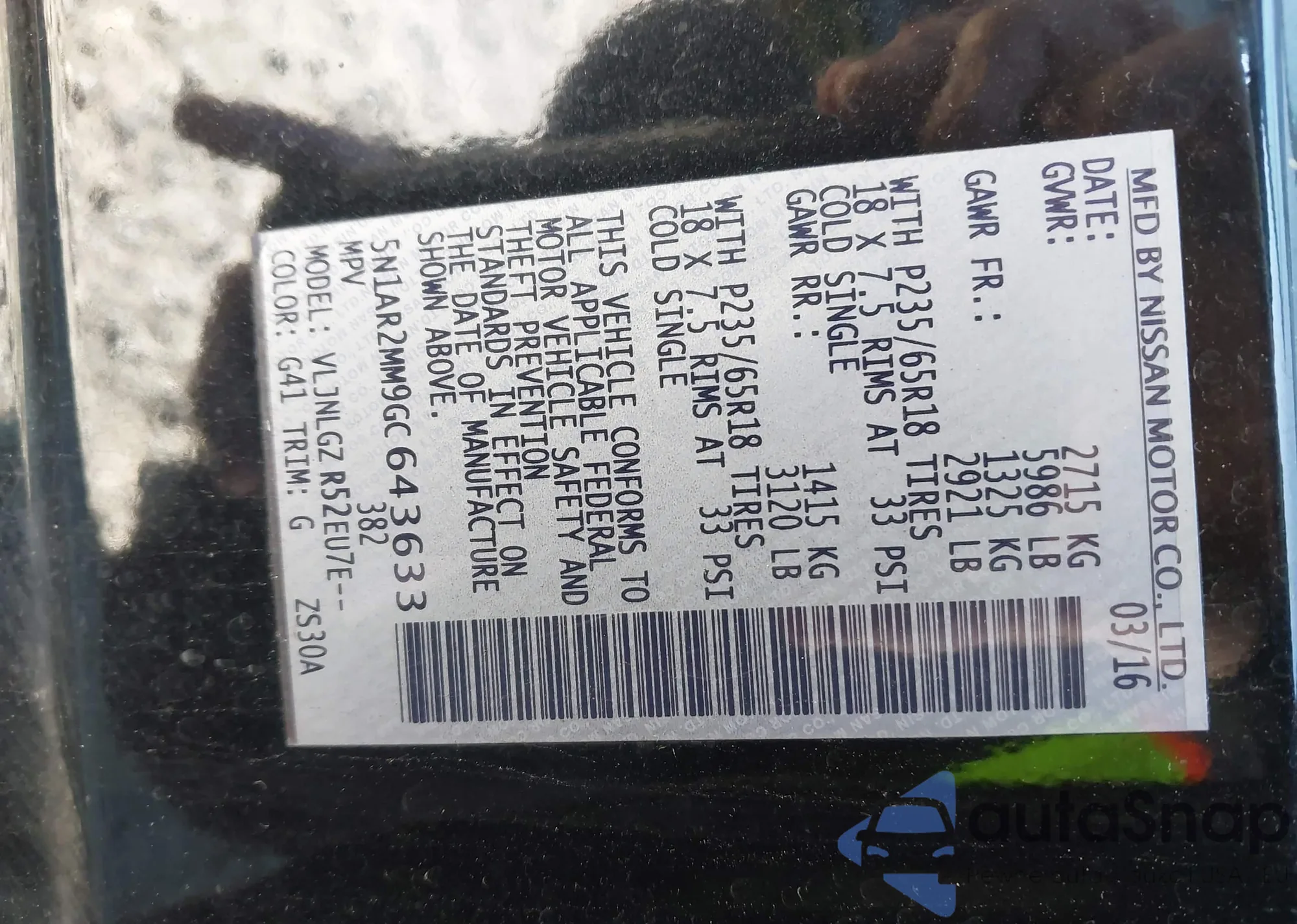 LOT: 44048925 VIN: 5N1AR2MM9GC643633