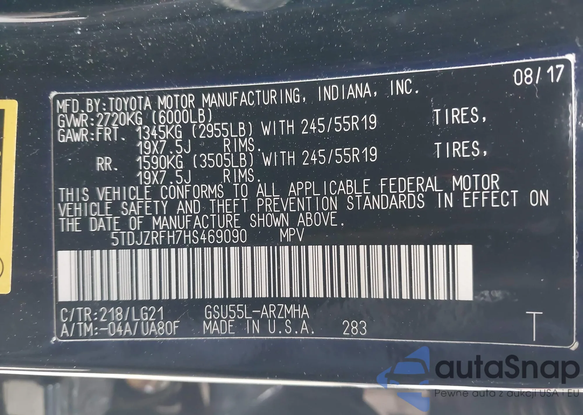 • VIN 5TDXBRCH0NS087613