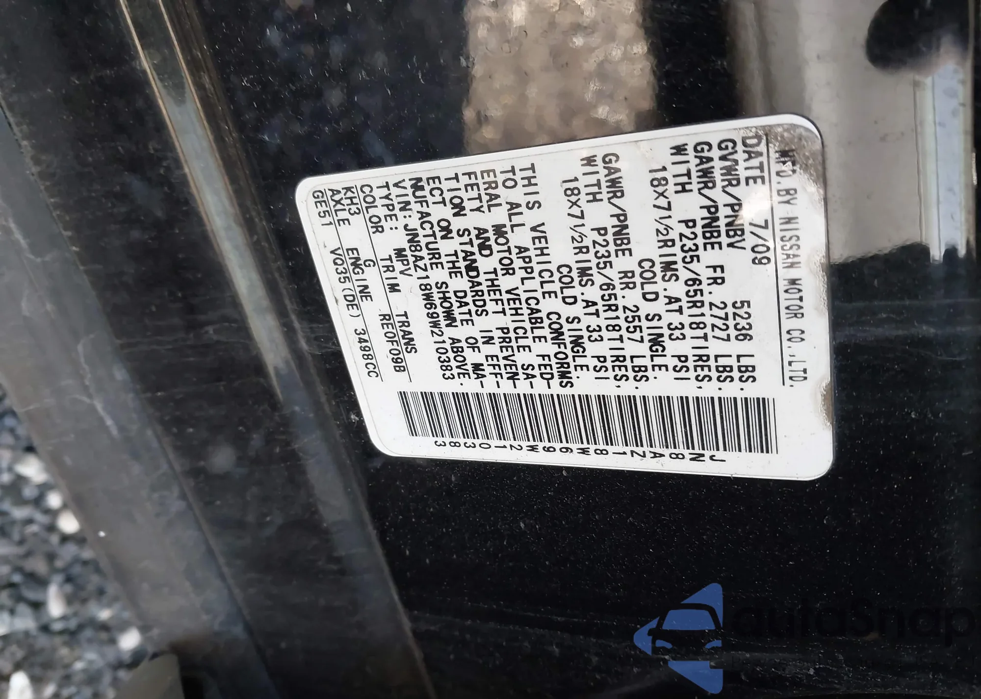LOT: 43871167 VIN: JN8AZ18W69W210383