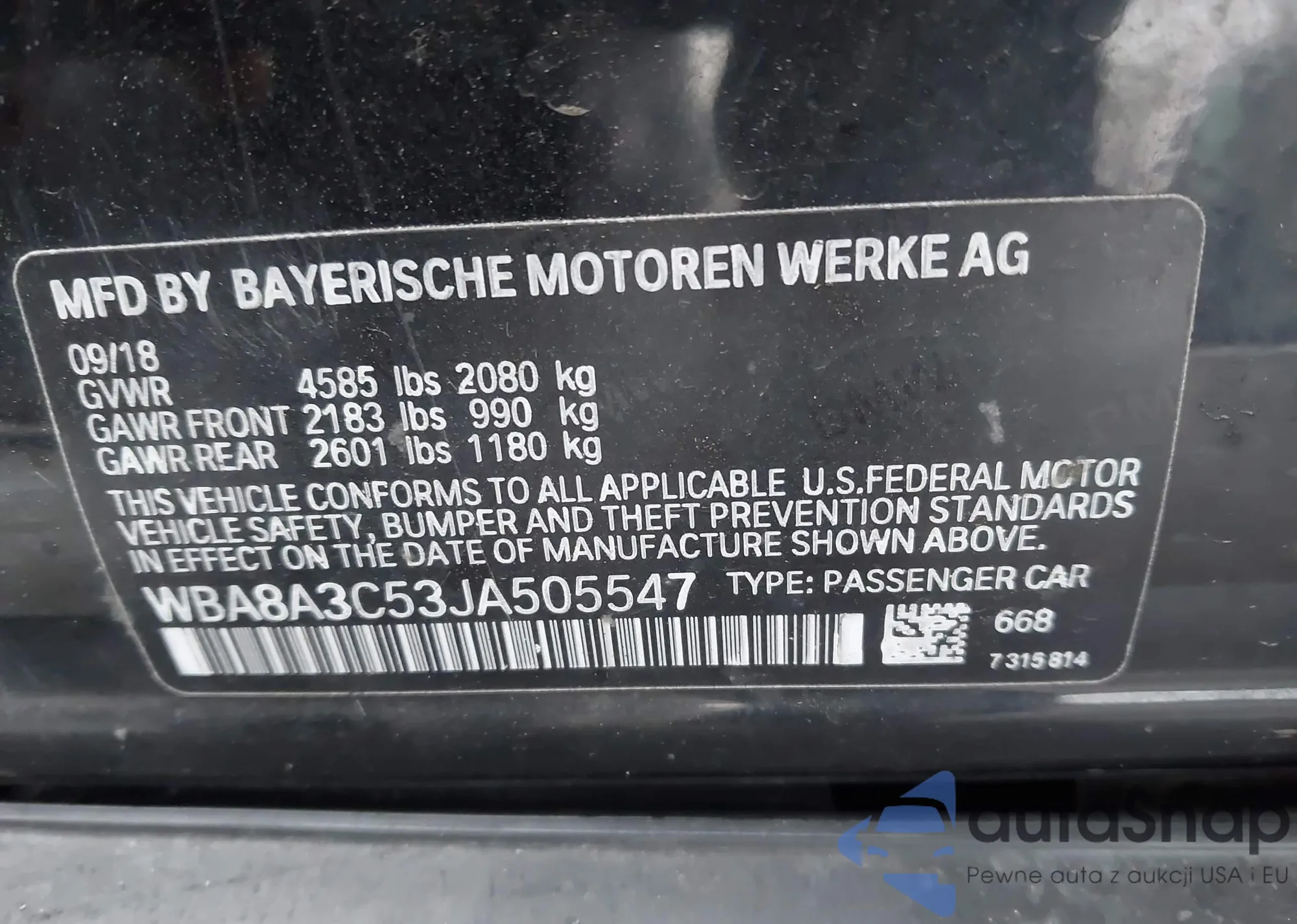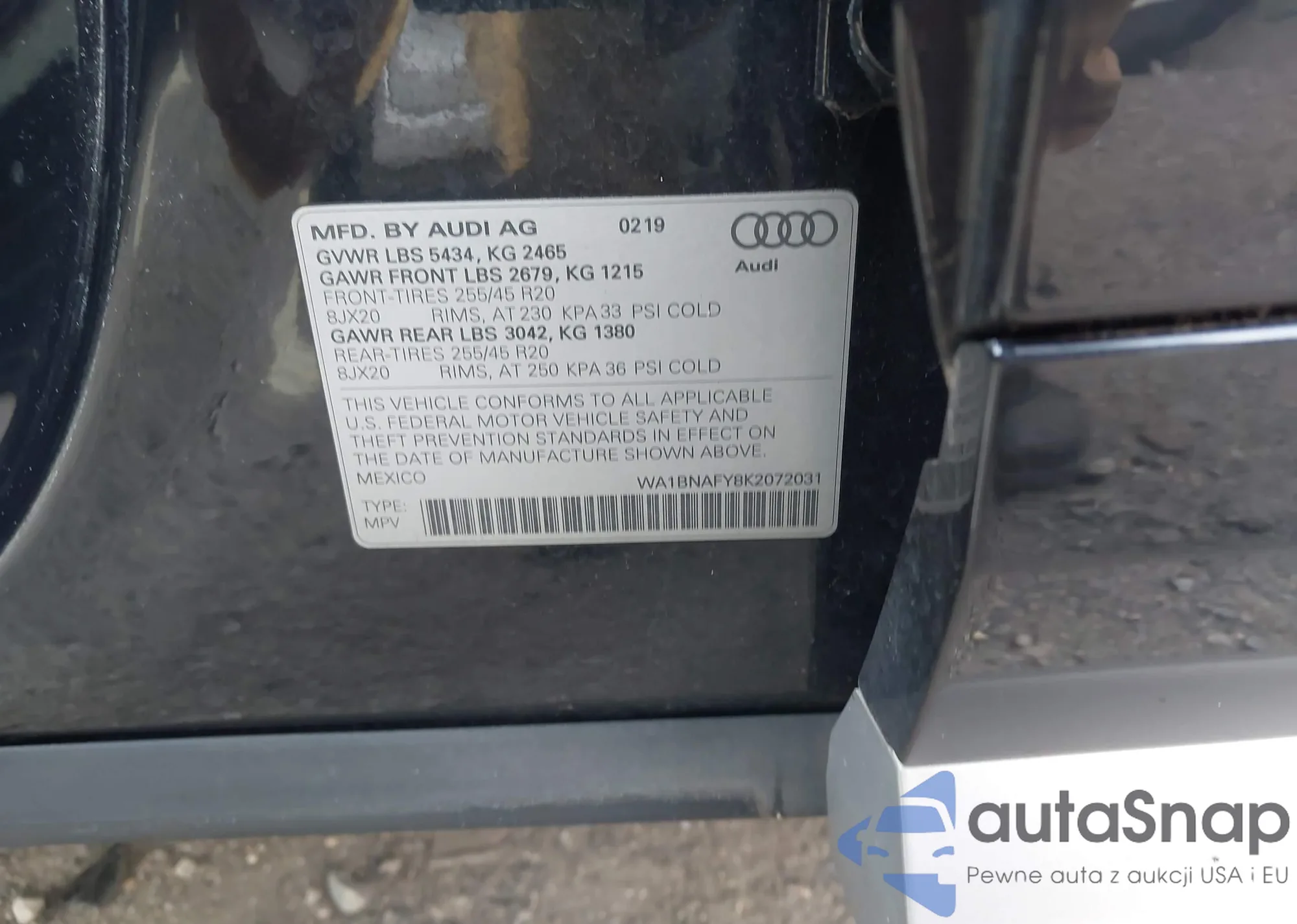 LOT: 43943345 VIN: WA1BNAFY8K2072031
