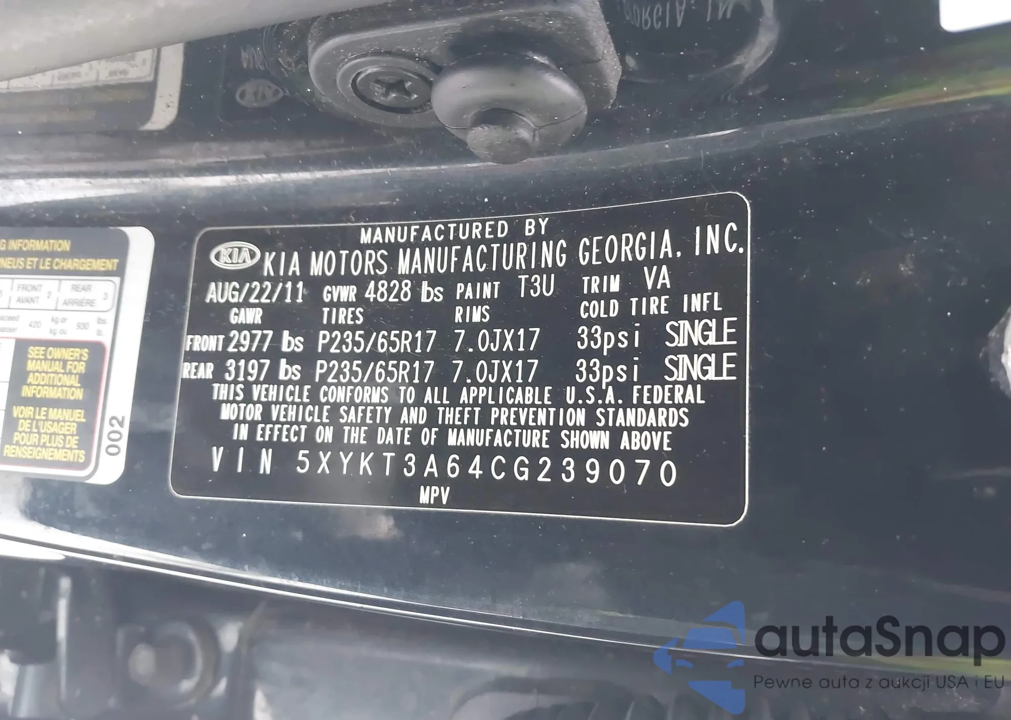 • VIN 5XYKT3A64CG239070