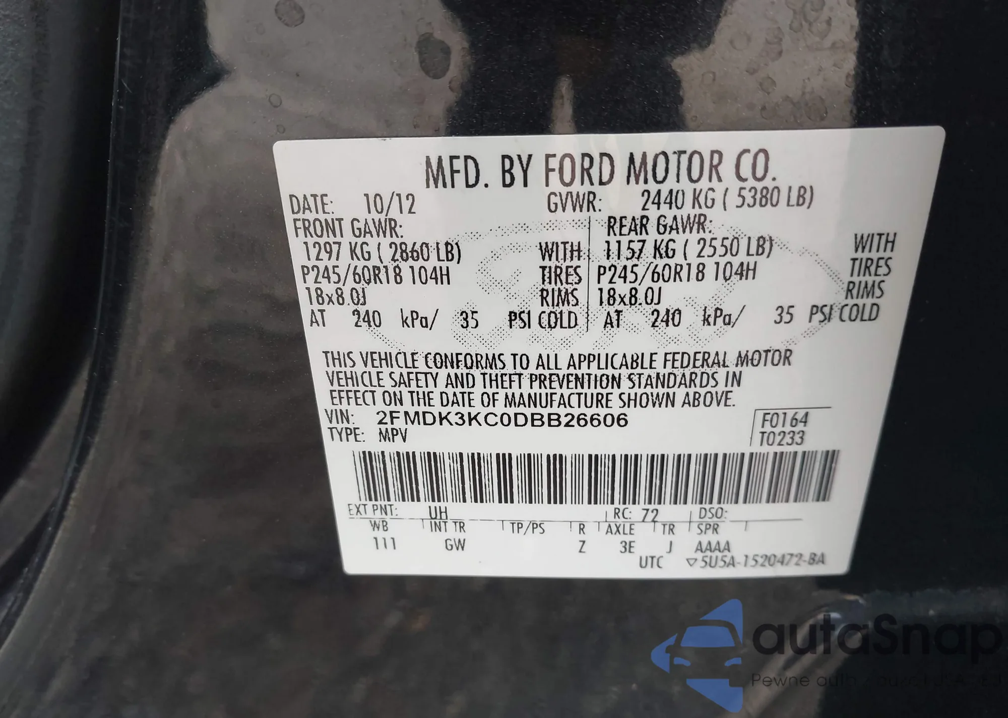 • VIN 2FMDK3KC0DBB26606