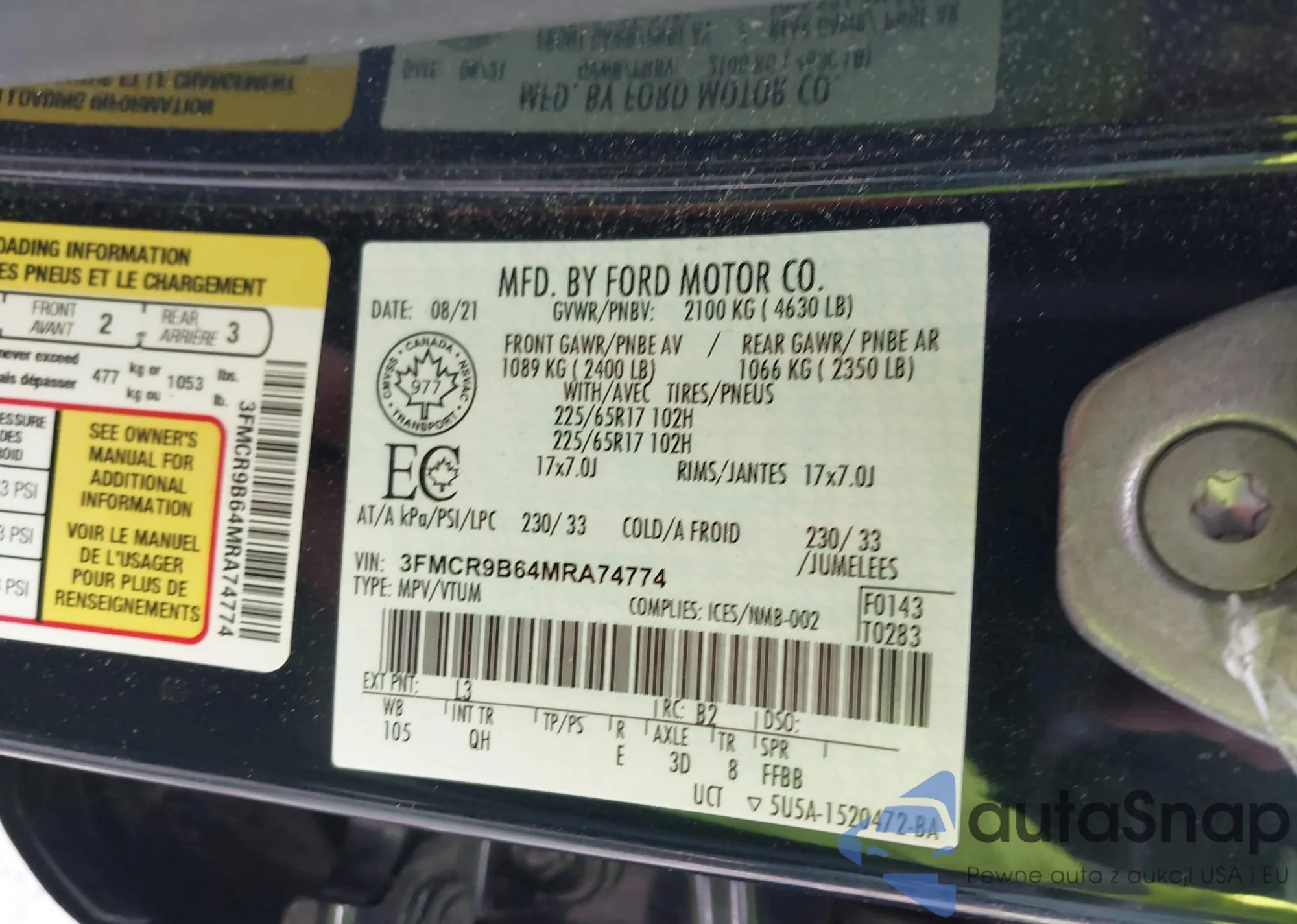 • VIN 3FMCR9B64MRA74774