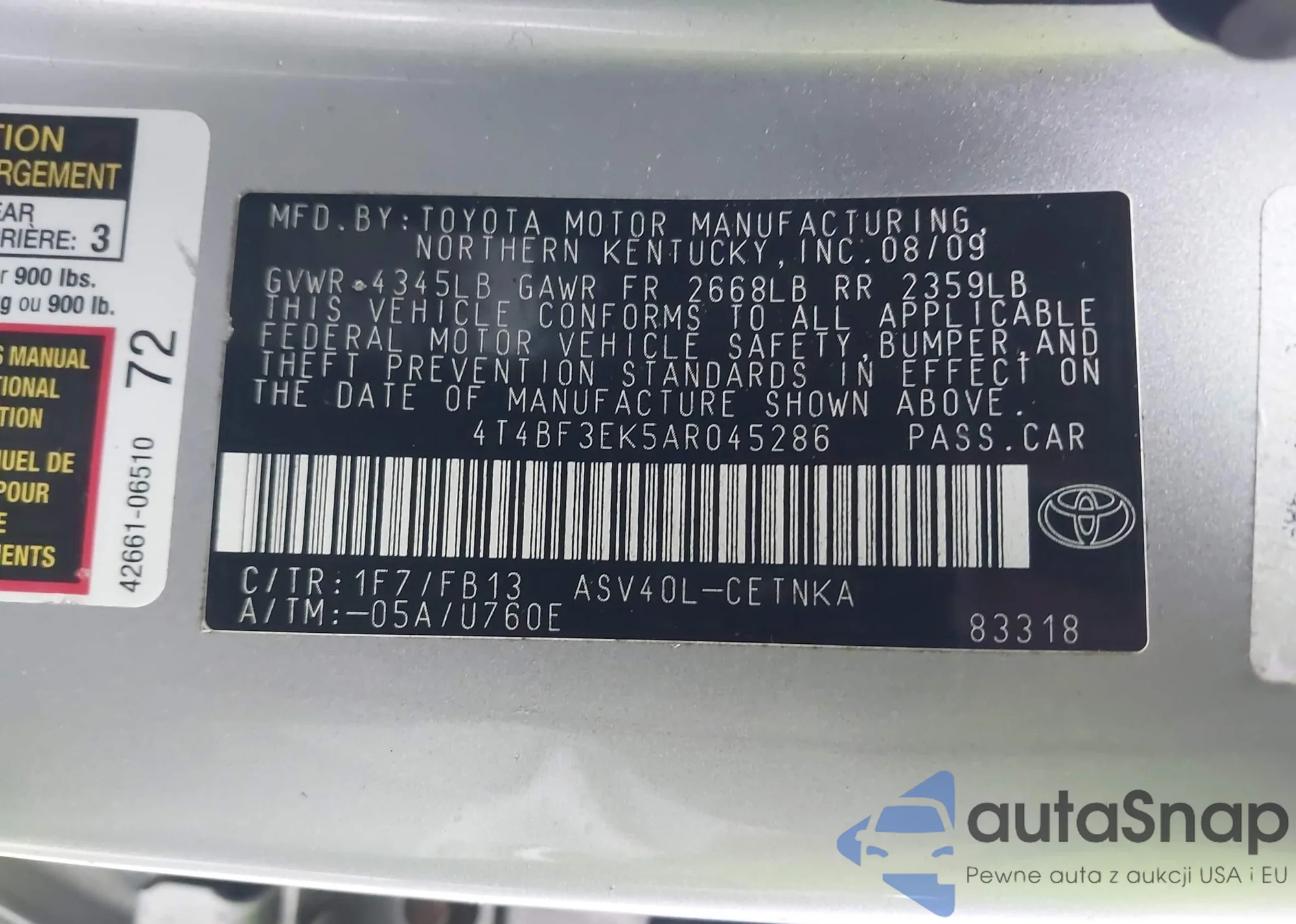 • VIN 1N4AL2AP5AC179306