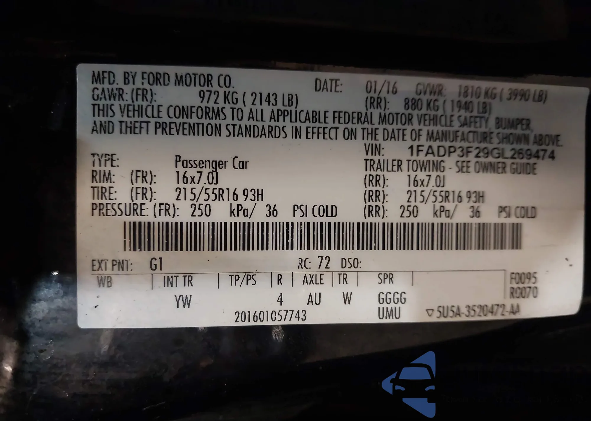• VIN WBA5B3C59GG259061