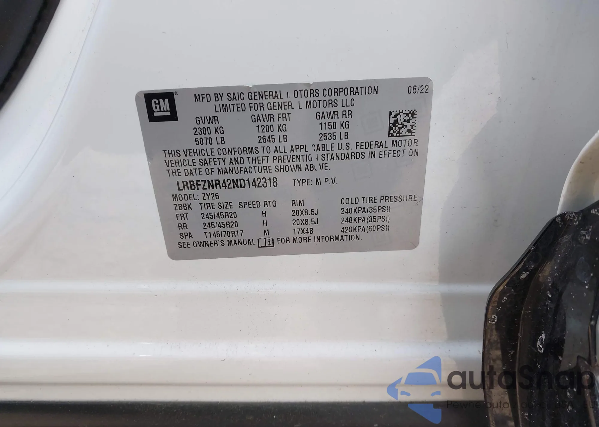 LOT: 43906665 VIN: LRBFZNR42ND142318