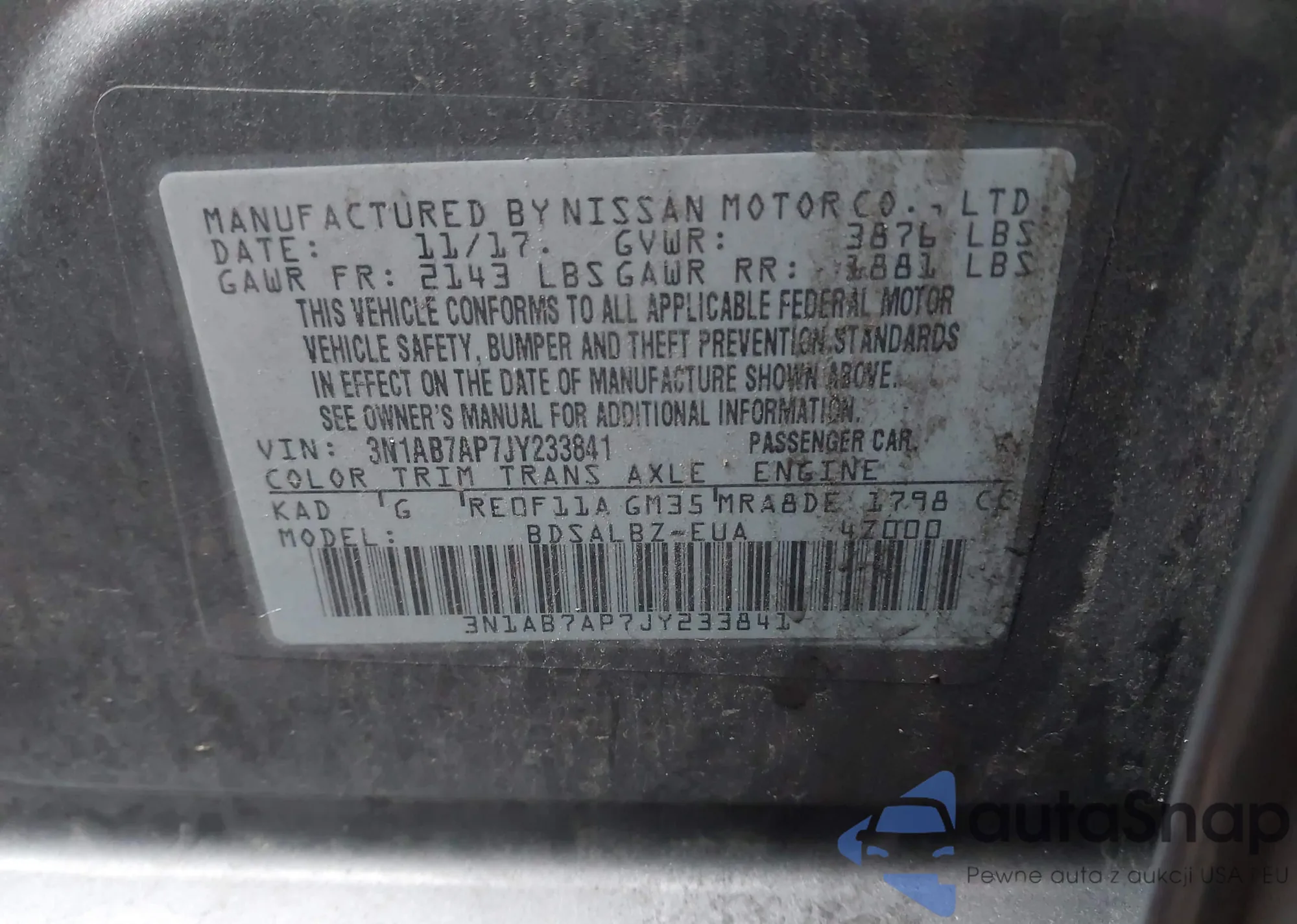 • VIN 3N1AB7AP7JY233841