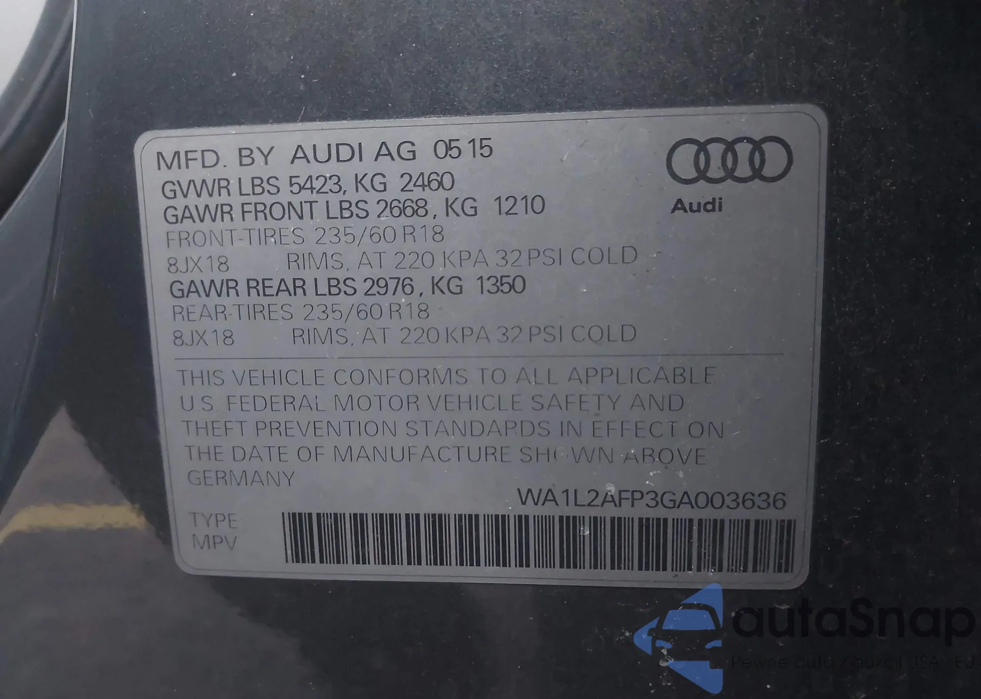 • VIN WA1L2AFP3GA003636