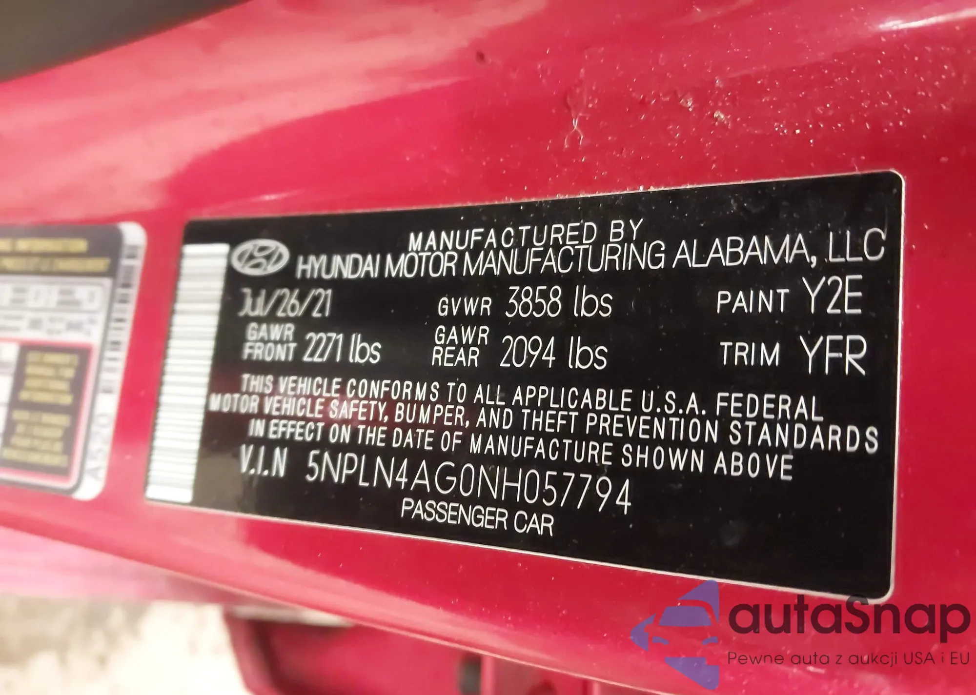 • VIN 5NPLN4AG0NH057794