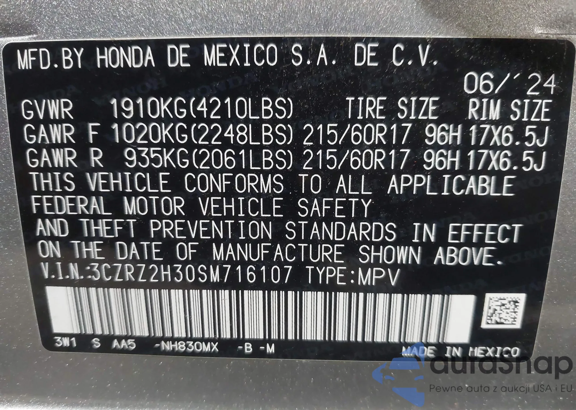 • VIN 3CZRZ2H30SM716107