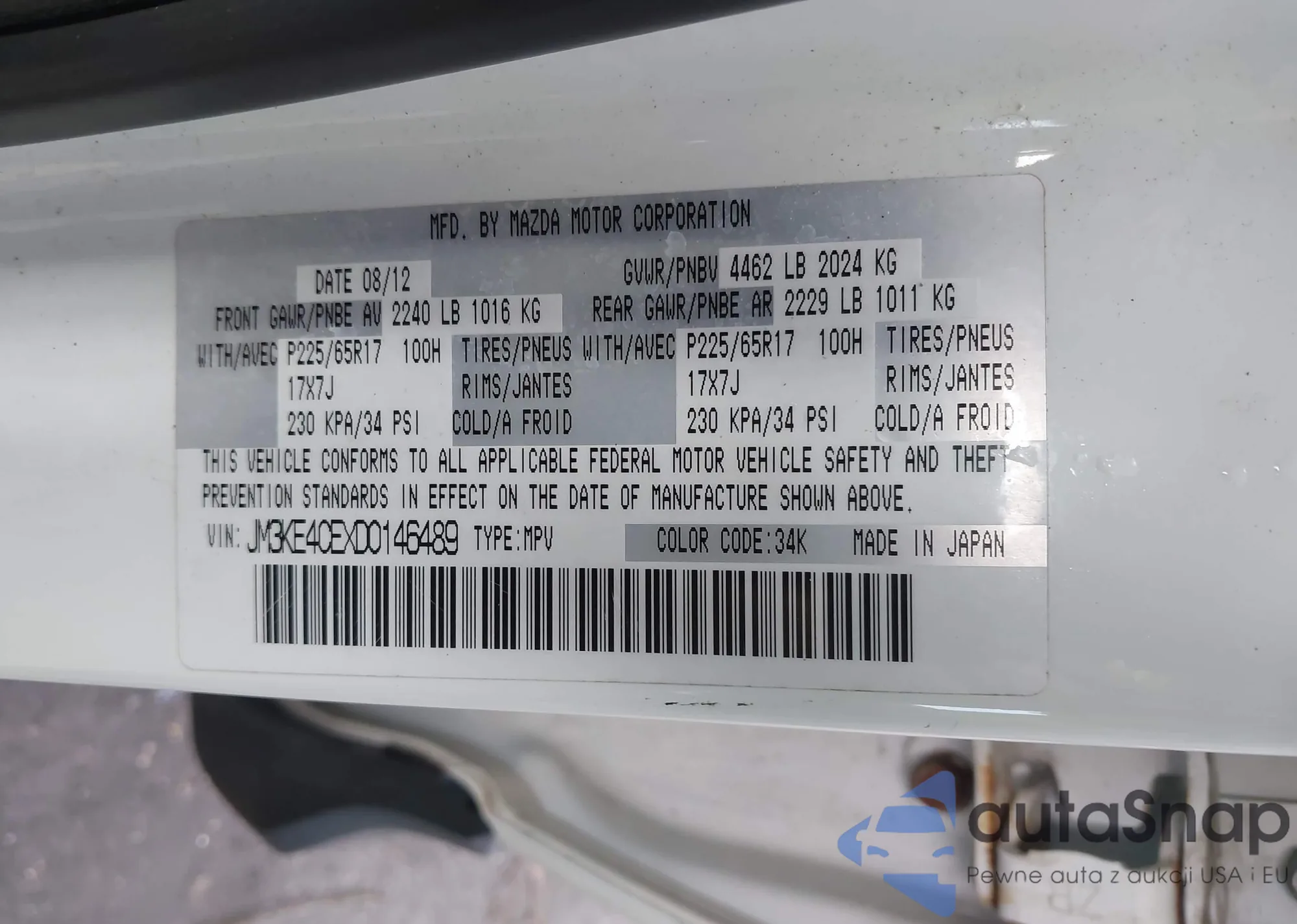 • VIN JM3KE4CEXD0146489