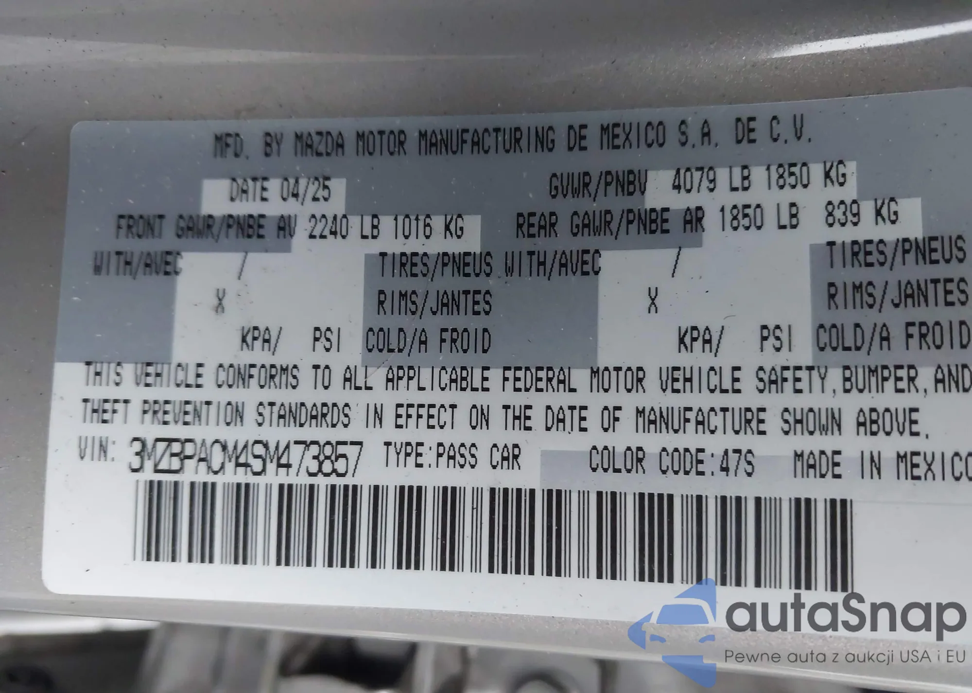 • VIN JM3KFBCM7J0351109