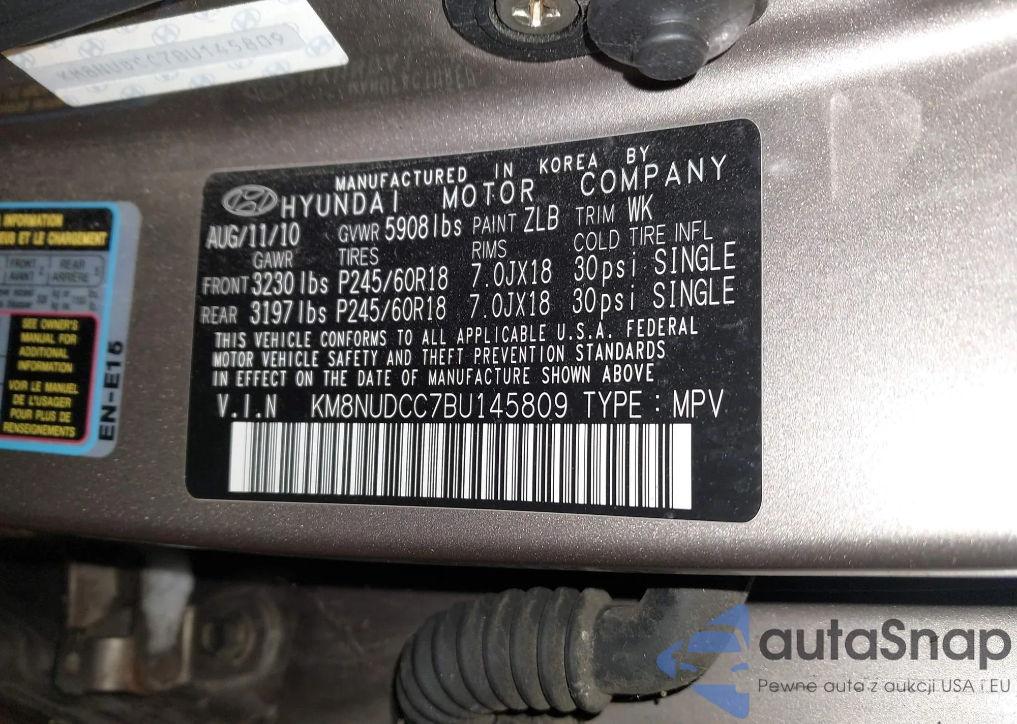 LOT: 43873123 VIN: KM8NUDCC7BU145809