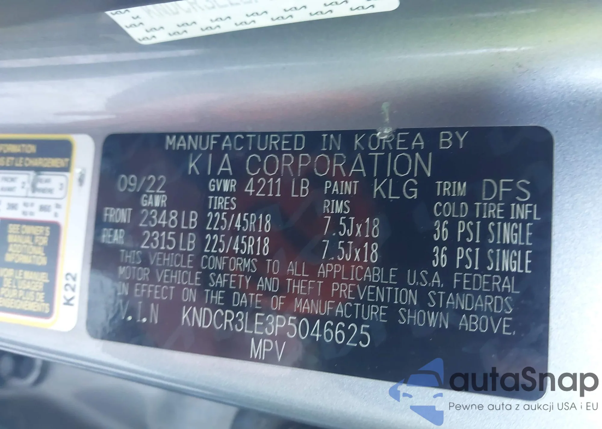 • VIN KNDCR3LE3P5046625
