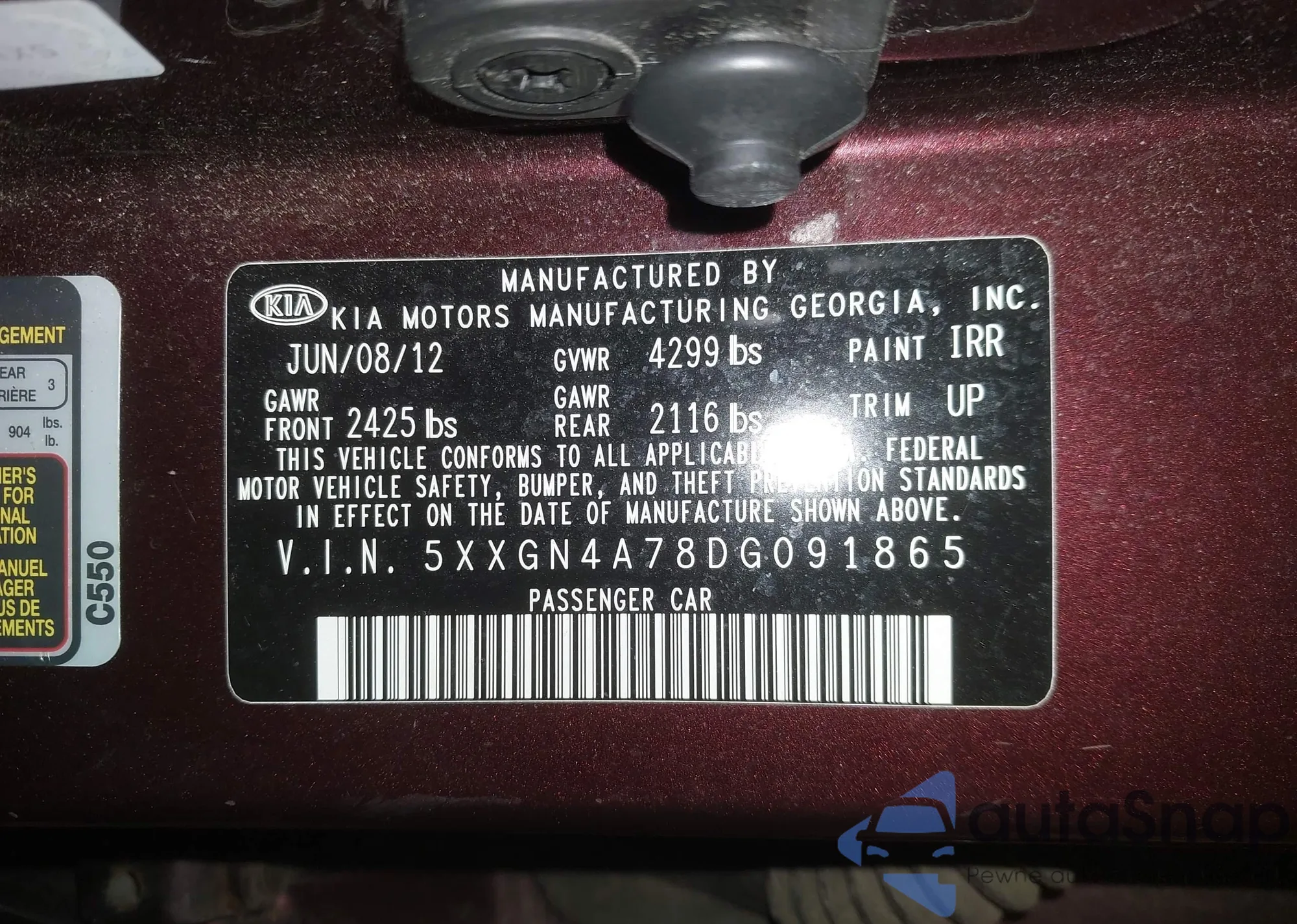 • VIN 5XXGN4A78DG091865