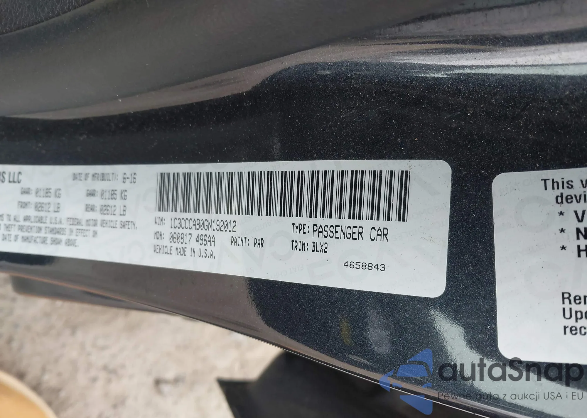 LOT: 44074213 VIN: 1C3CCCAB0GN192012