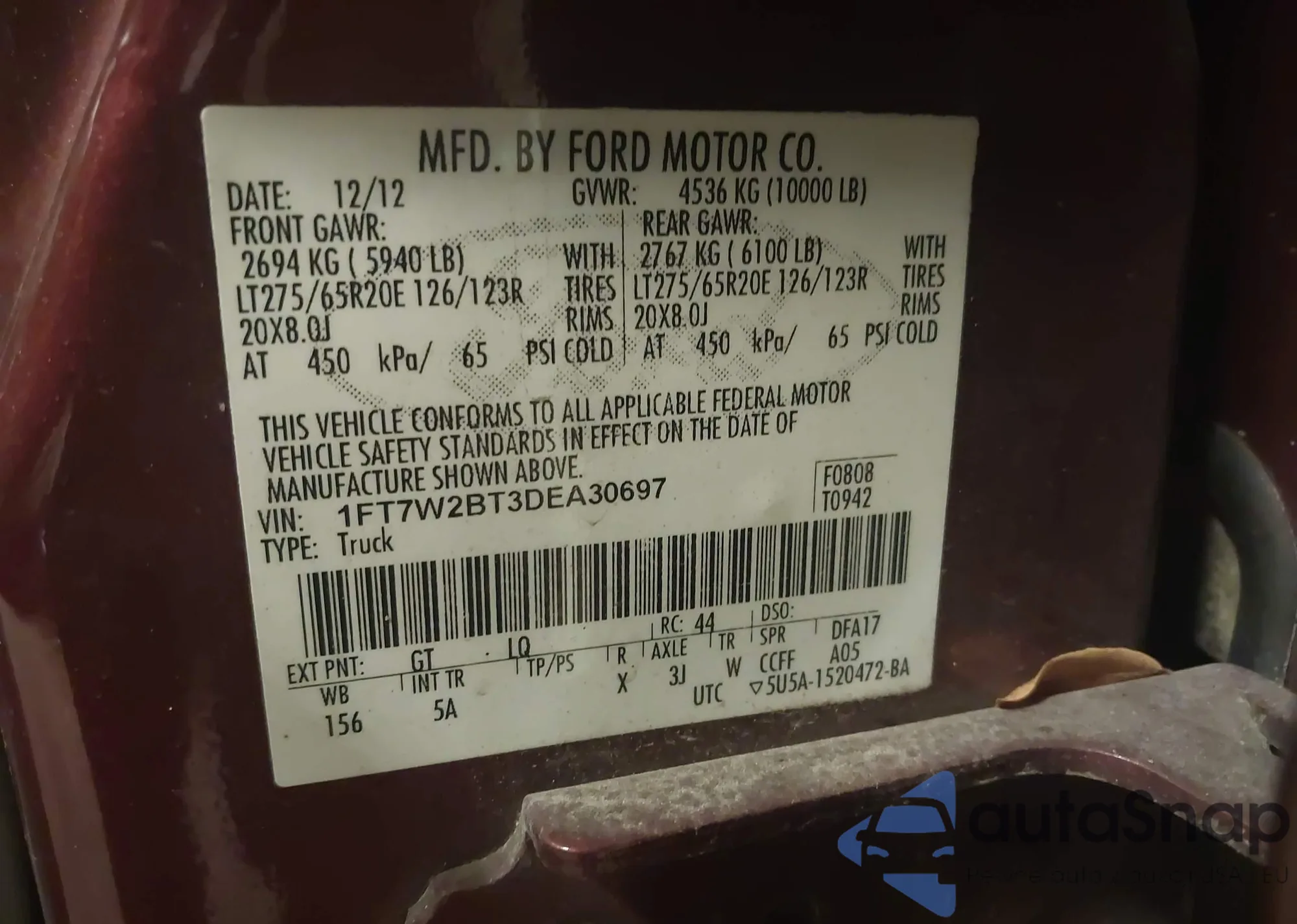 LOT: 44134836 VIN: 1FTPW12597KD14871