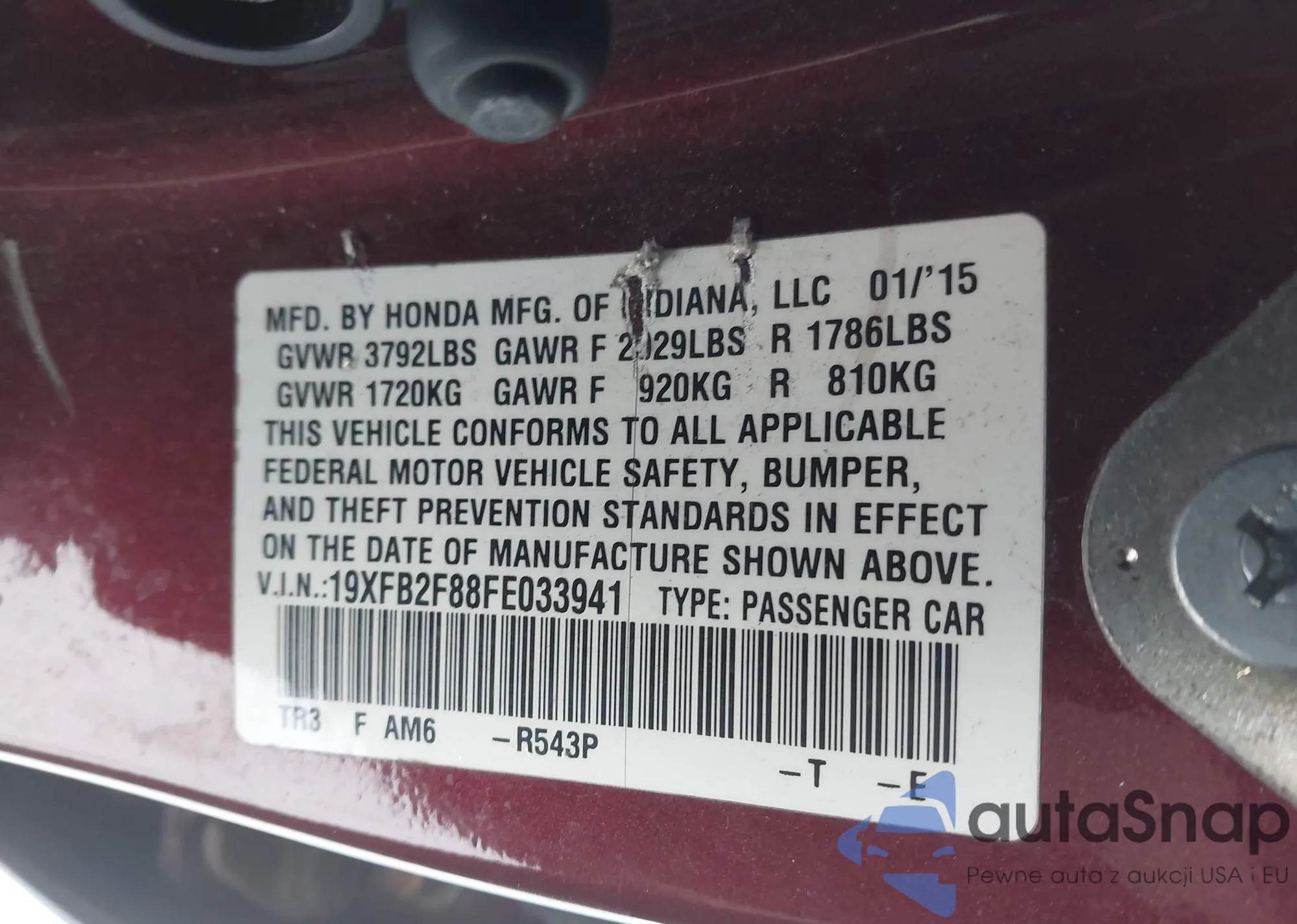 • VIN 19XFB2F88FE033941