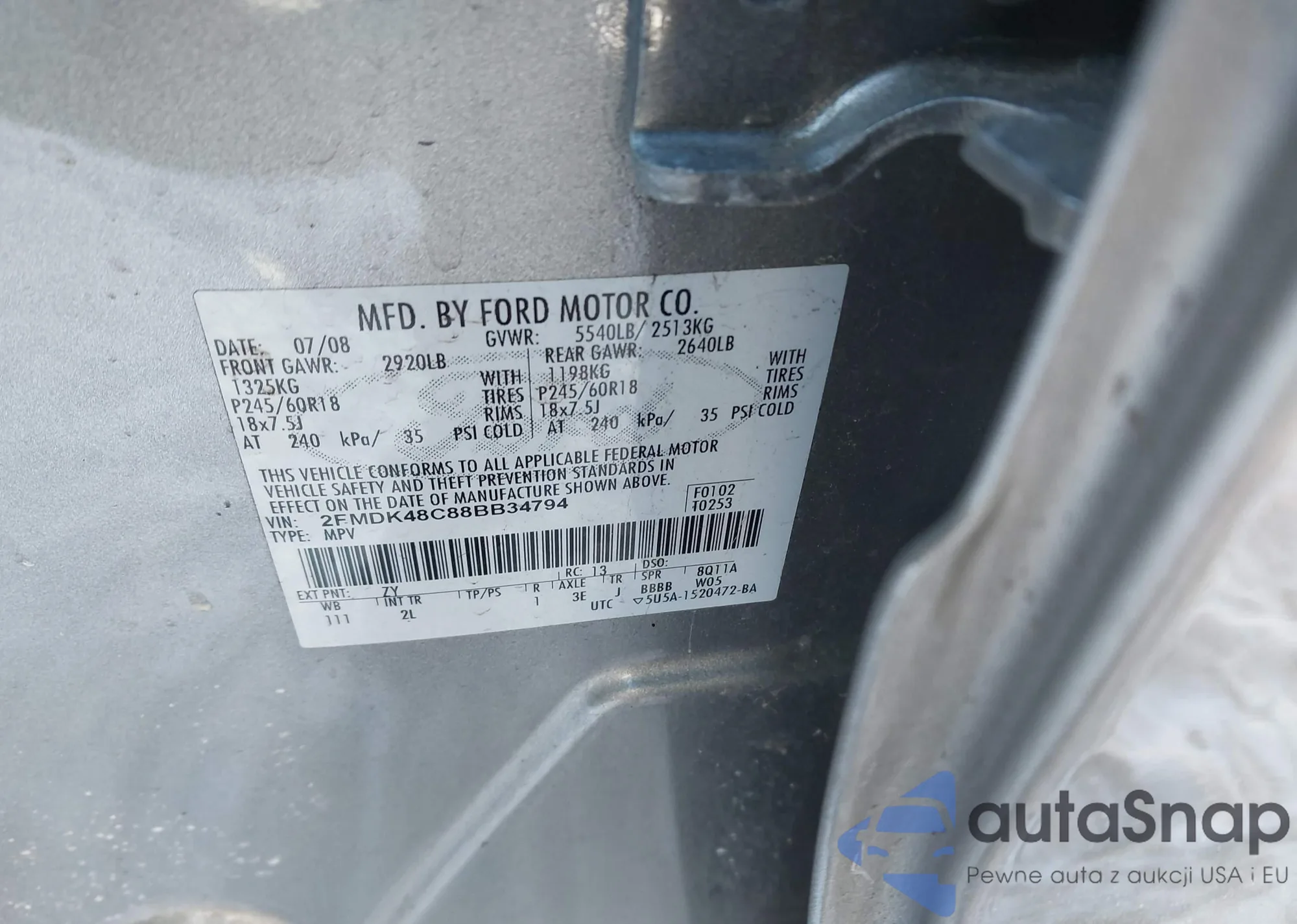 • VIN 2FMDK48C88BB34794