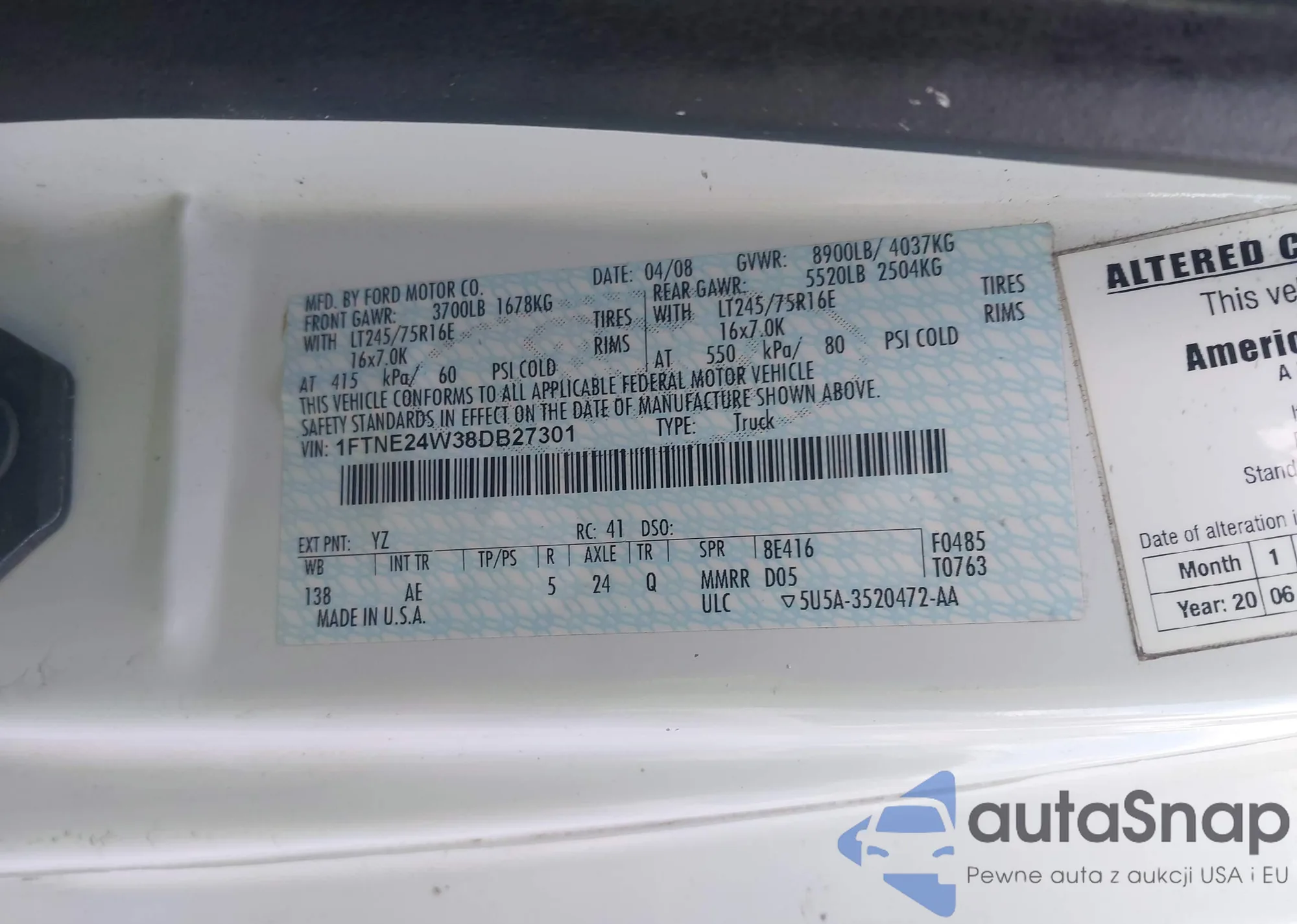 LOT: 43904927 VIN: 1FTNE24W38DB27301