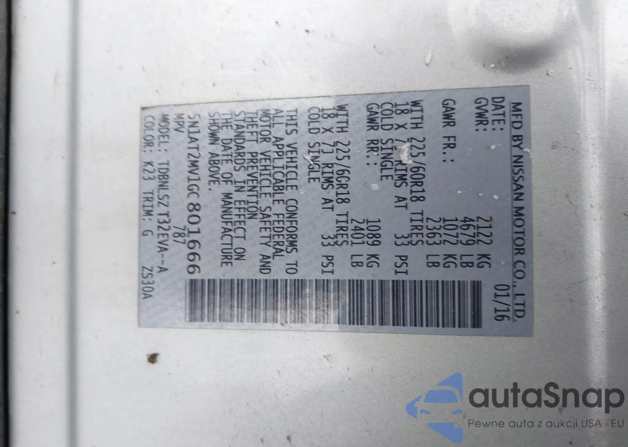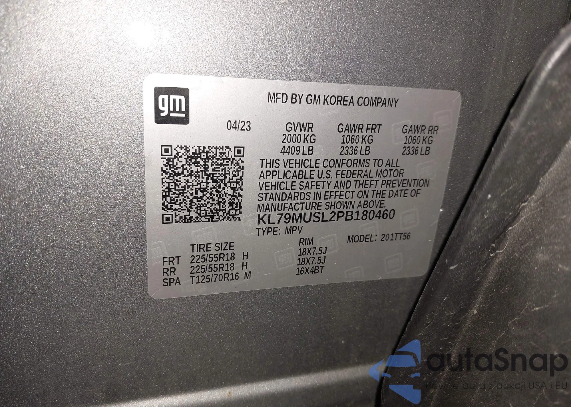 • VIN KL79MUSL2PB180460